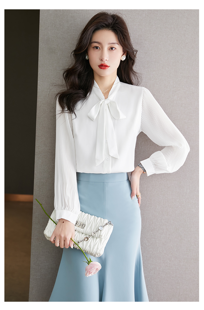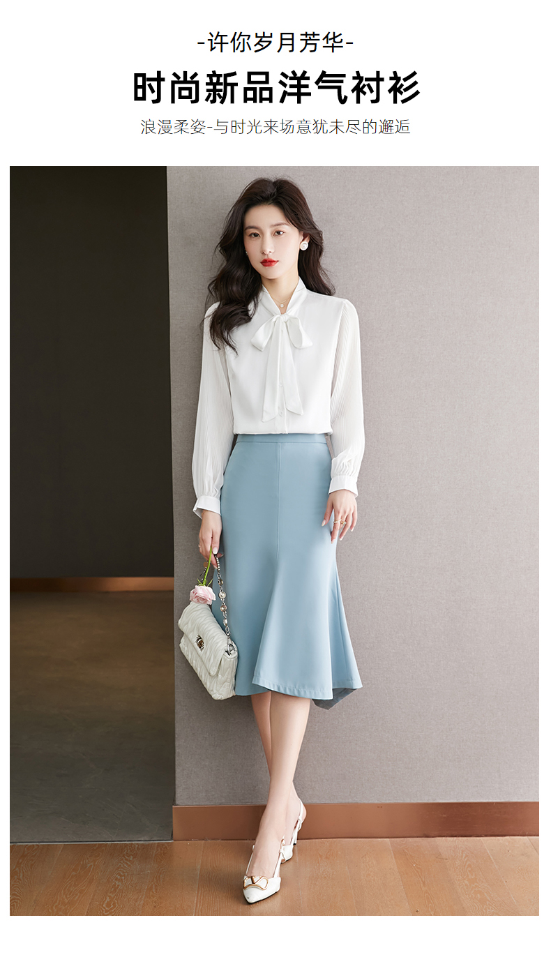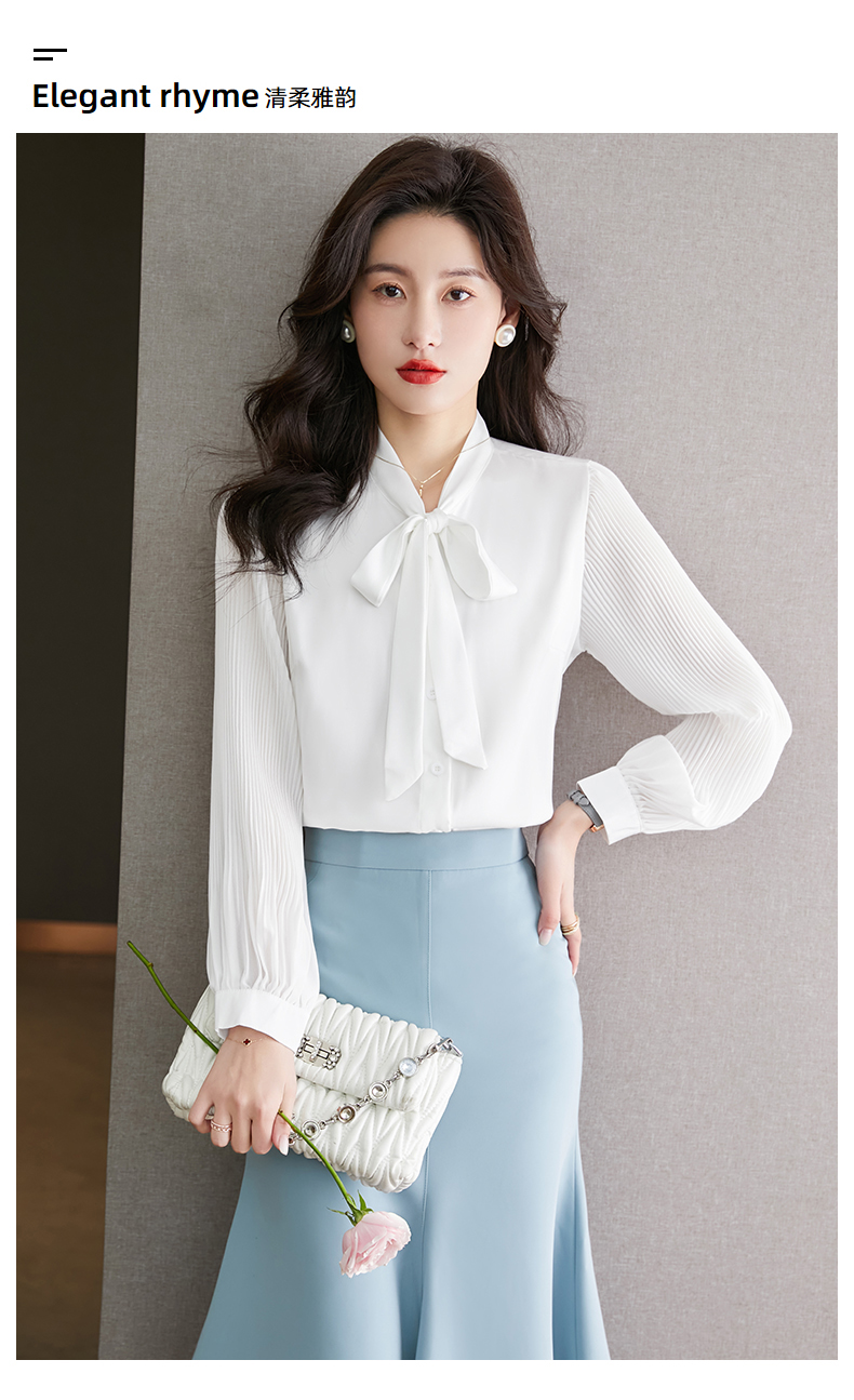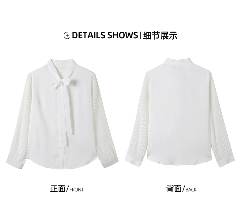 法式设计感蝴蝶结领白色衬衫,女春季新款别致泡泡袖雪纺衫职业衬衣CC-YX5619