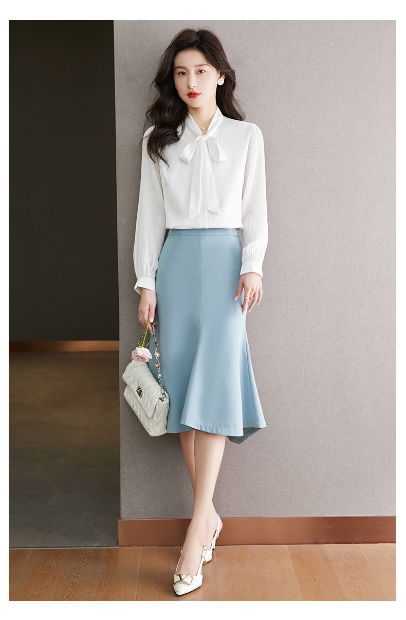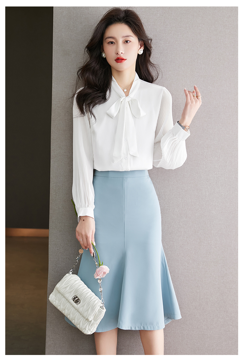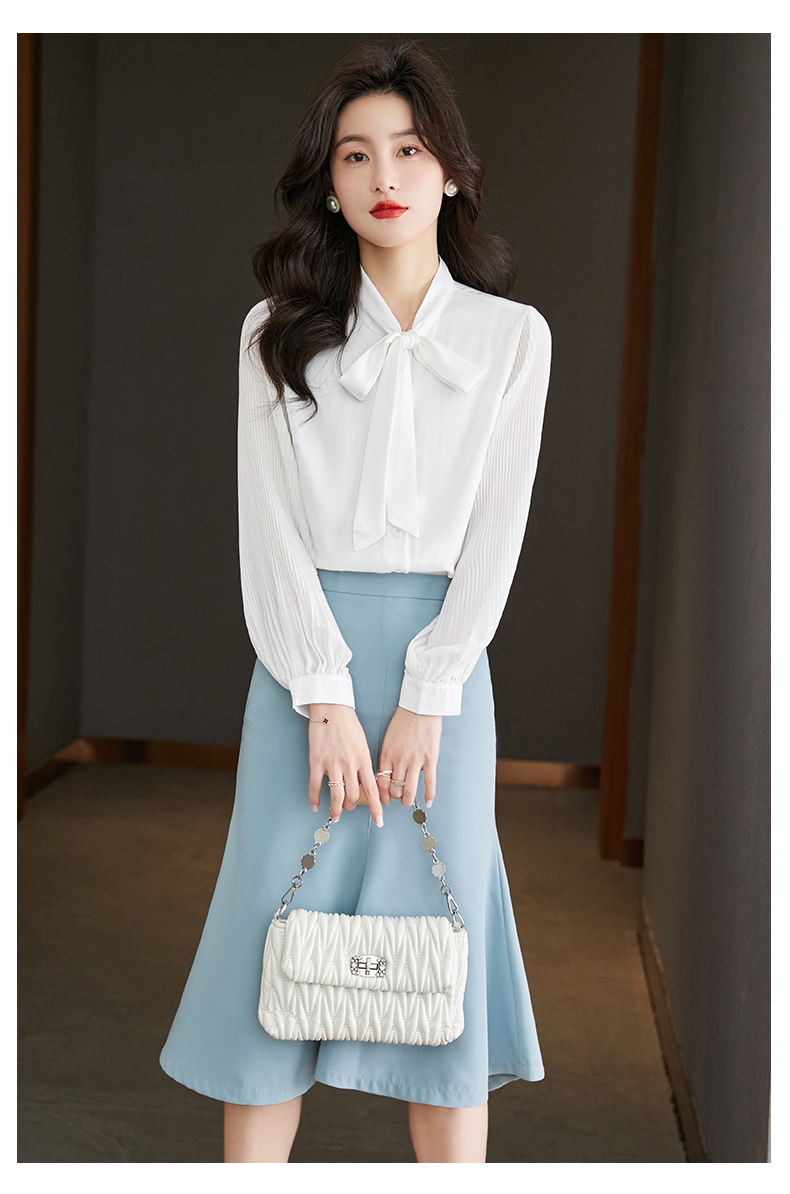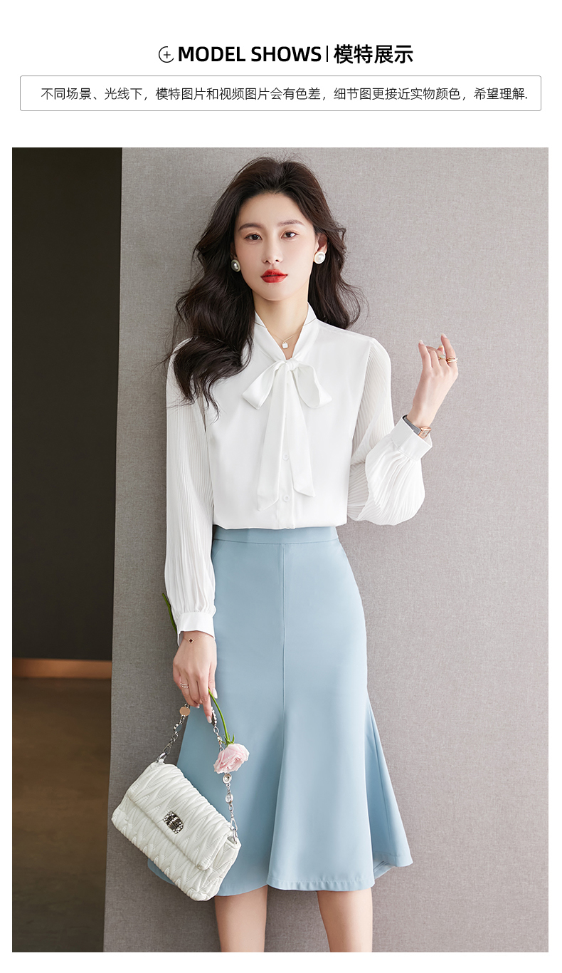 法式设计感蝴蝶结领白色衬衫,女春季新款别致泡泡袖雪纺衫职业衬衣CC-YX5619