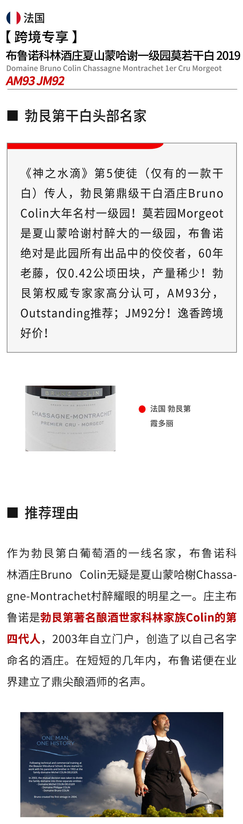 【跨境现货好价】布鲁诺科林酒庄夏山蒙哈榭一级园莫若干白2019