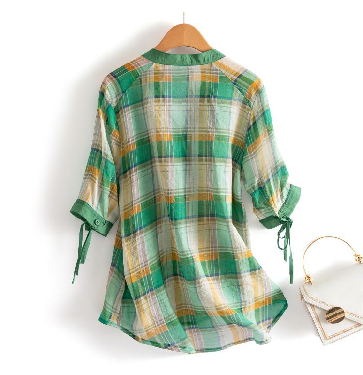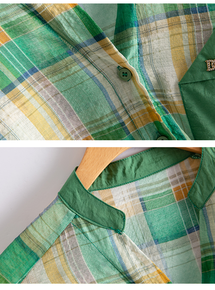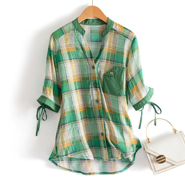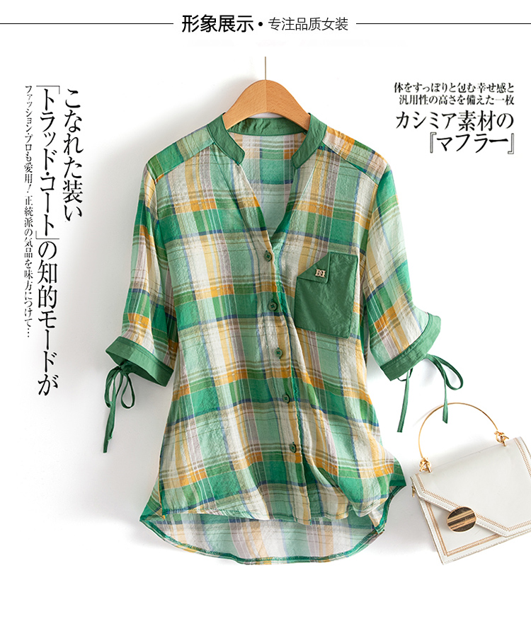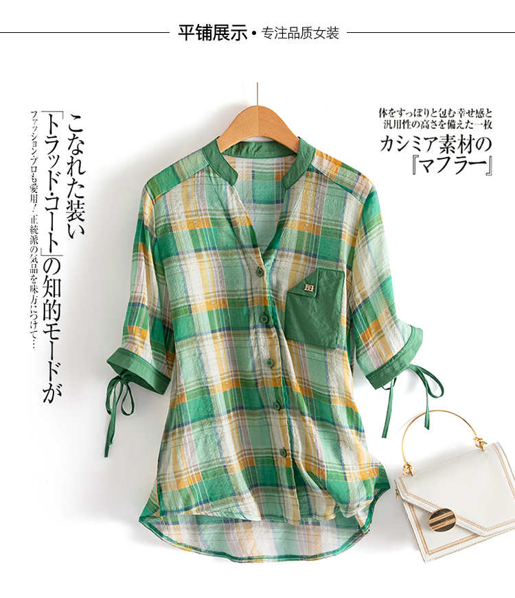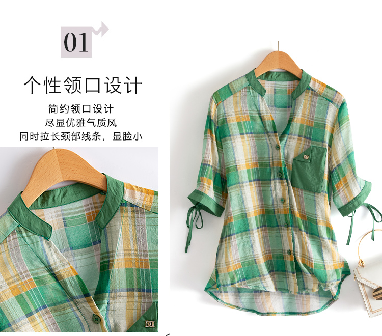2022夏季天丝棉料透气爽滑宽松衬衫领短袖上衣 HR-XCMZ7328-1