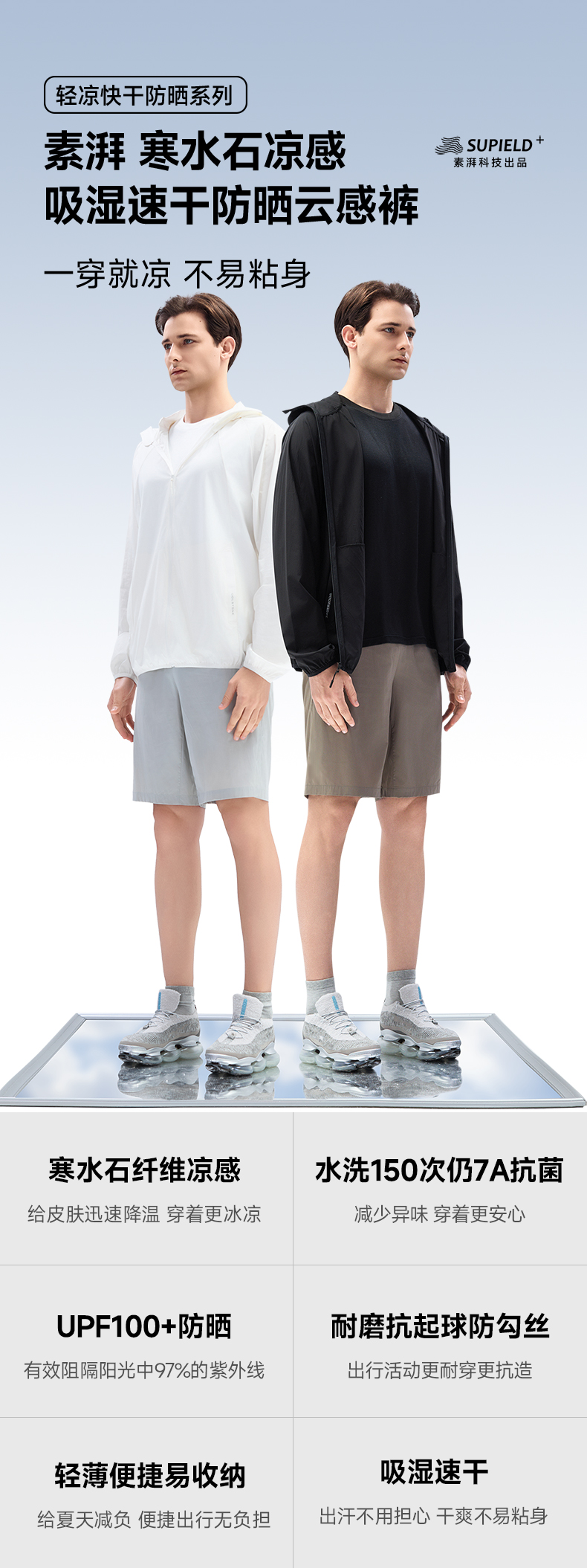素湃Supield云感超轻速干运动短裤男7A抗菌寒水石凉感五分裤夏季