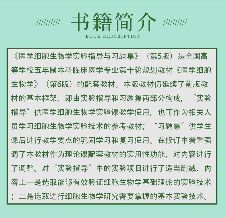 书名:医学细胞生物学实验指导与习题集(第5版/配套教材/本科配教/临床医学)