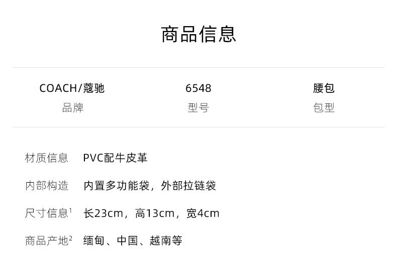 COACH 奥莱款小号女士PVC配皮腰包