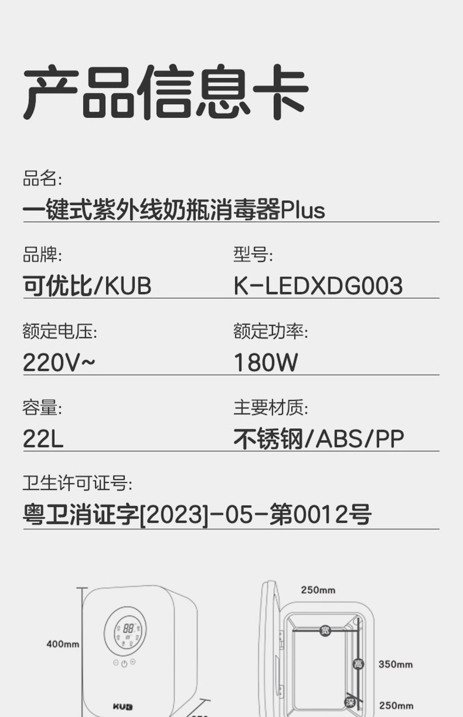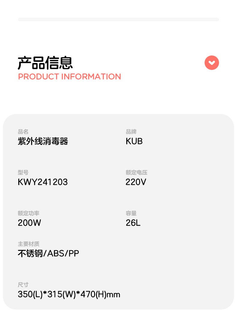 KUB可优比婴儿奶瓶消毒器带烘干宝宝专用紫外线杀菌婴儿消毒柜