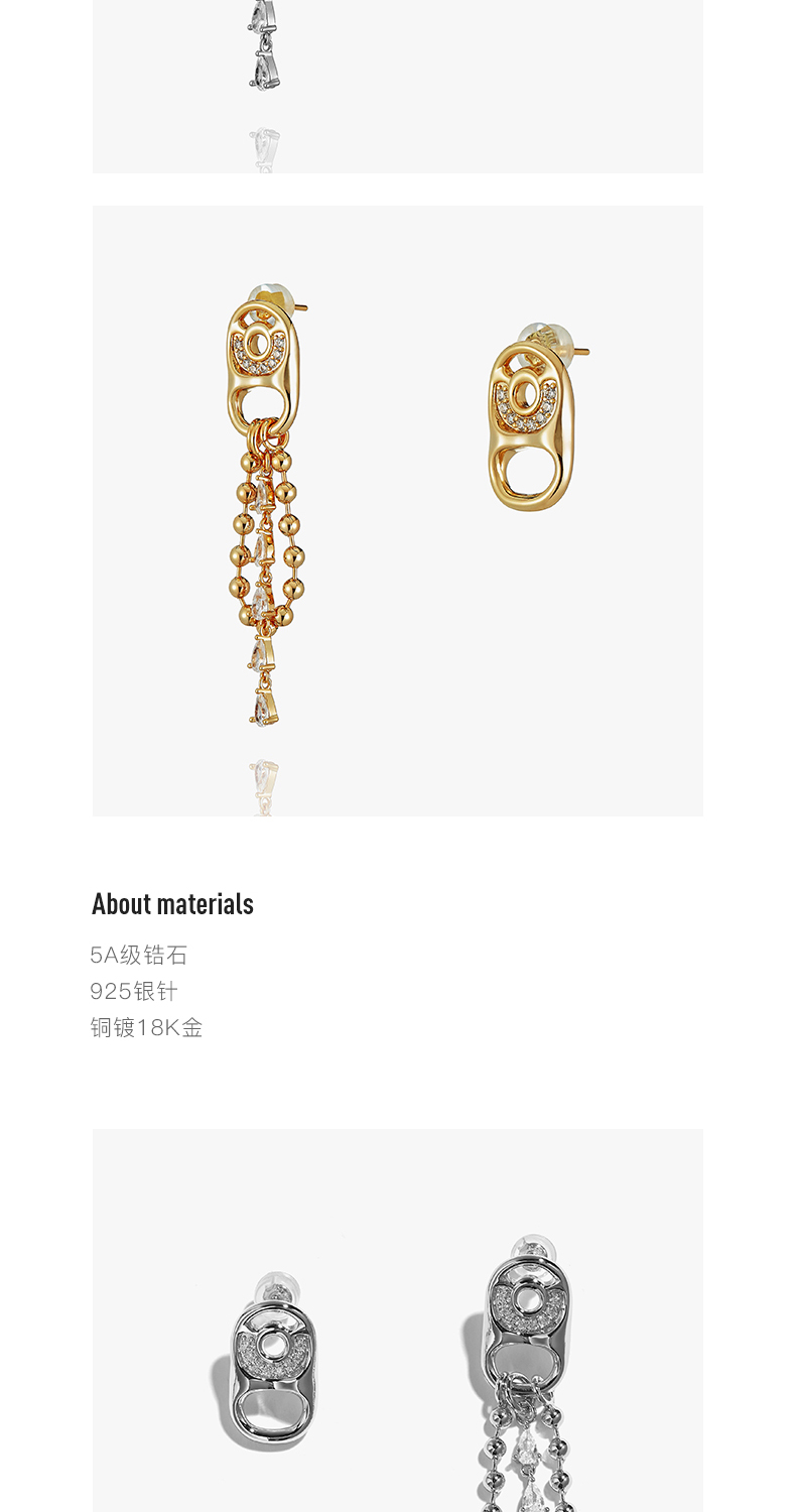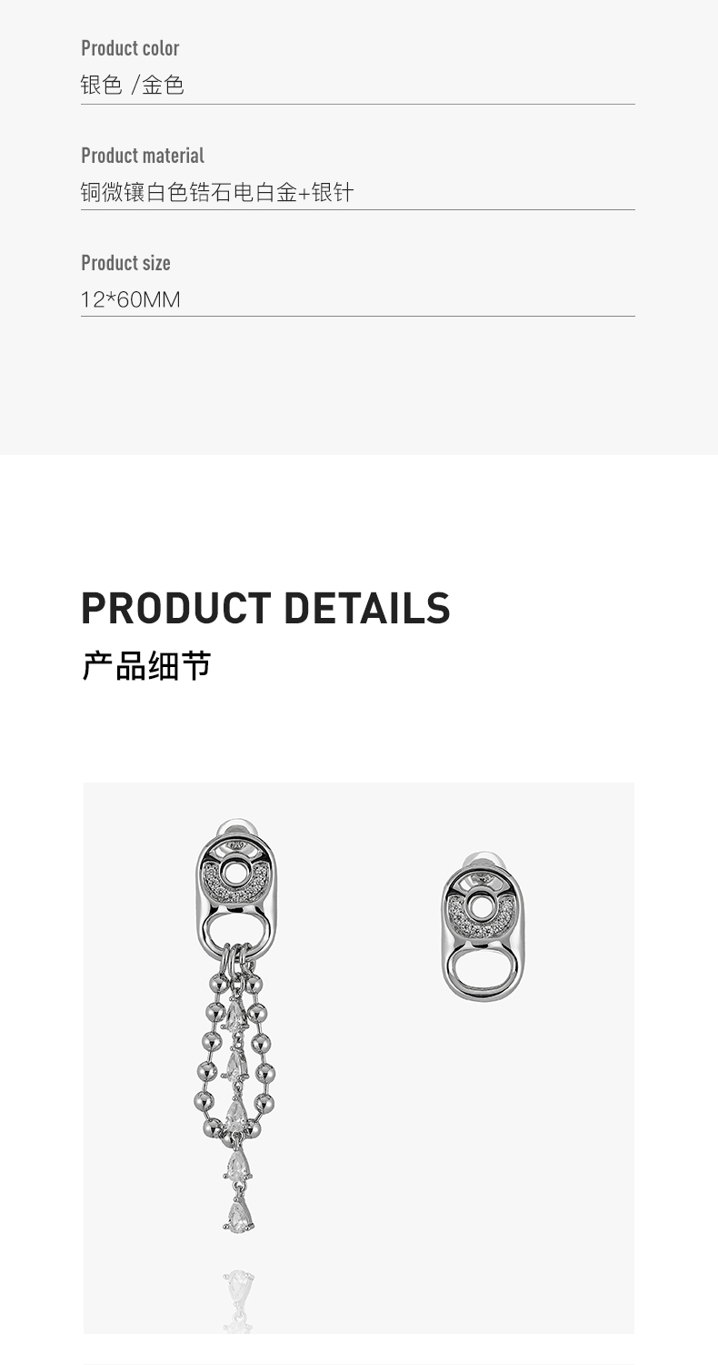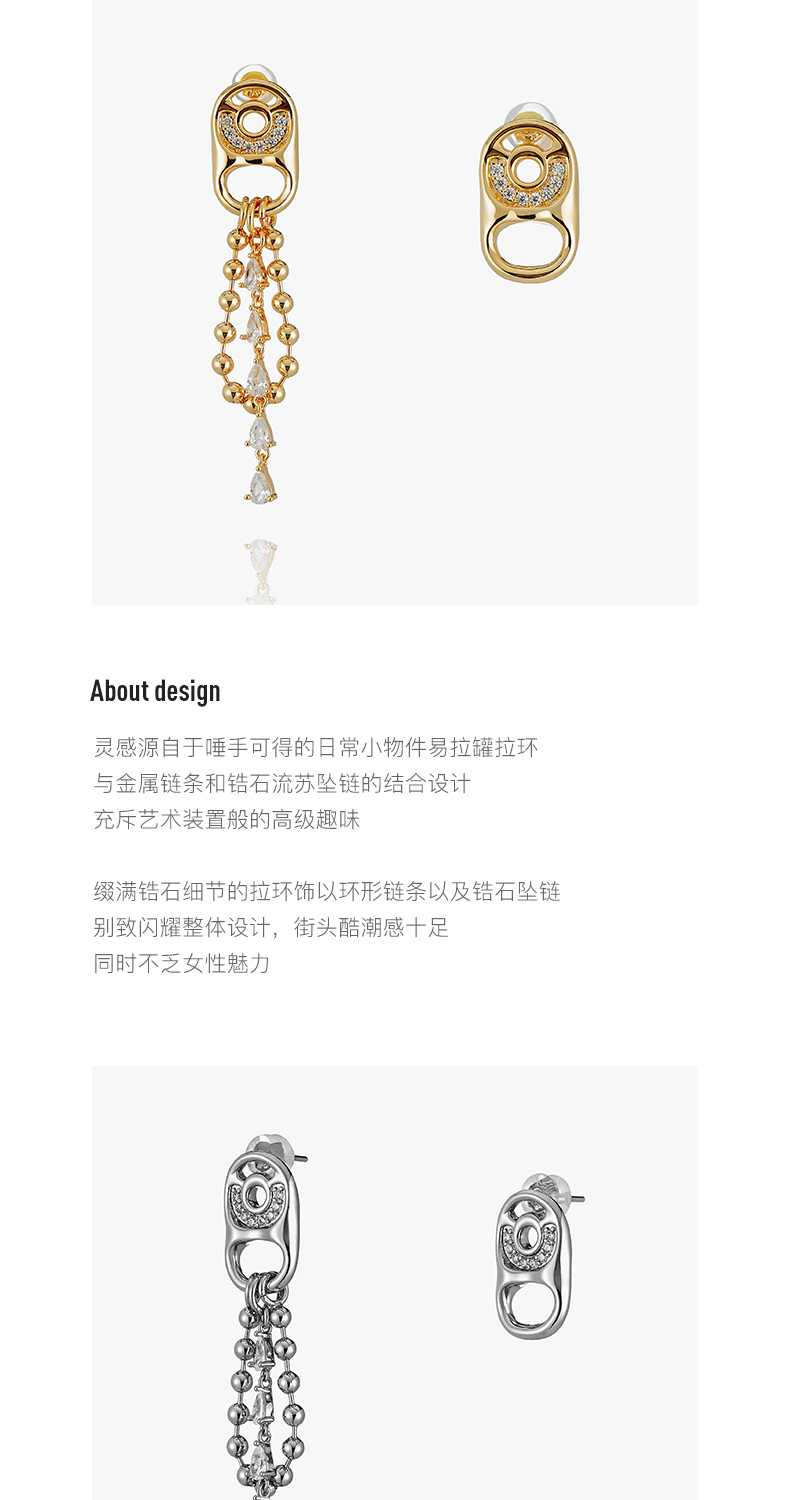 lost in echo 原创设计师 不对称易拉罐拉环链条耳环