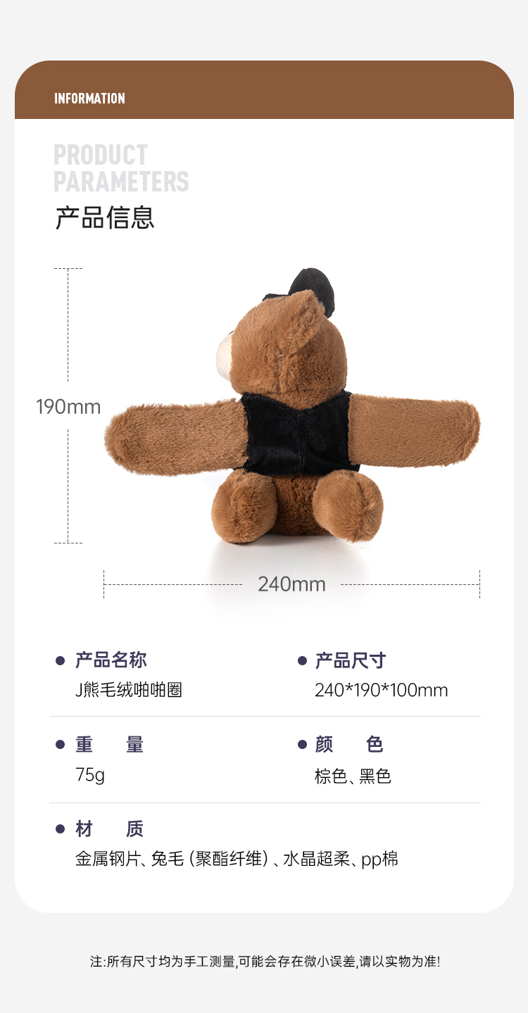 【实付满199送钥匙扣】【J熊毛绒啪啪圈】毛绒小熊公仔创意手腕配饰儿童玩具送礼礼物