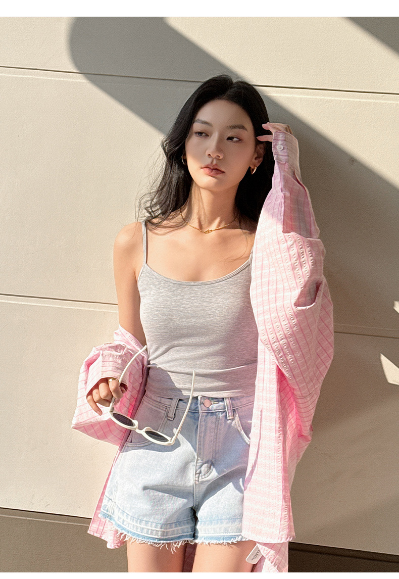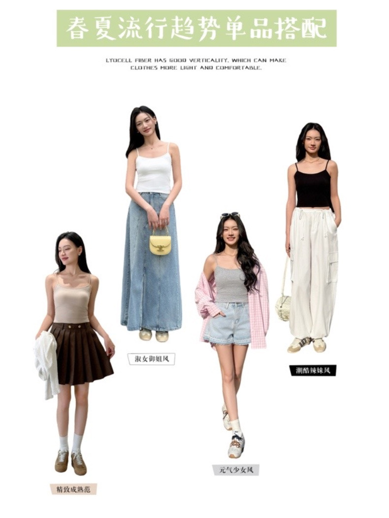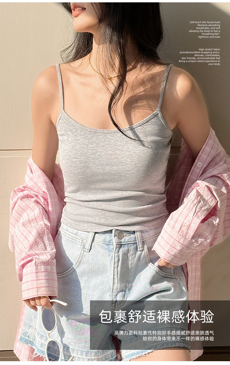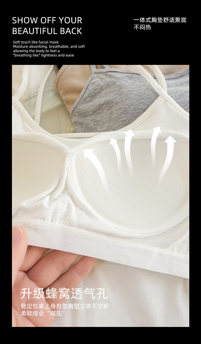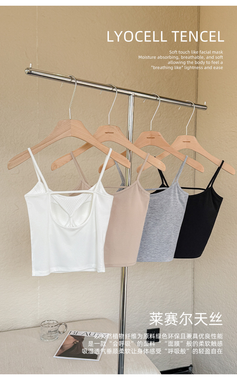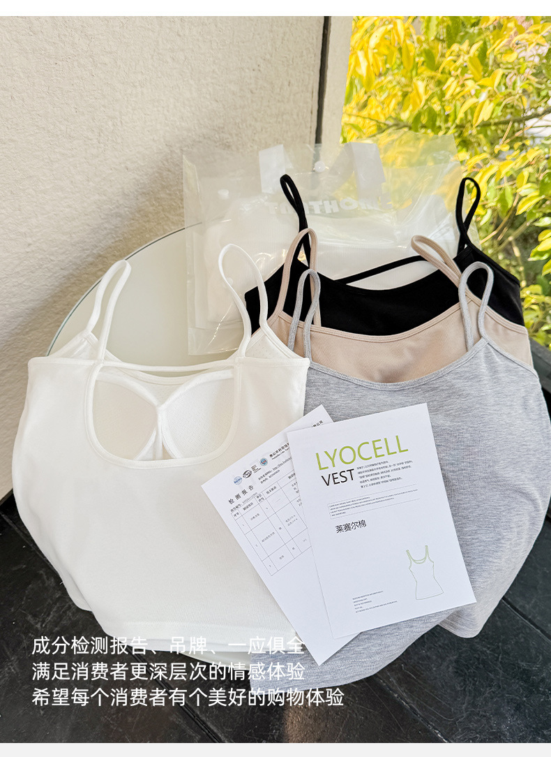 (合作款)2025夏季莱赛尔棉美背一体胸垫 打底上衣吊带背心女