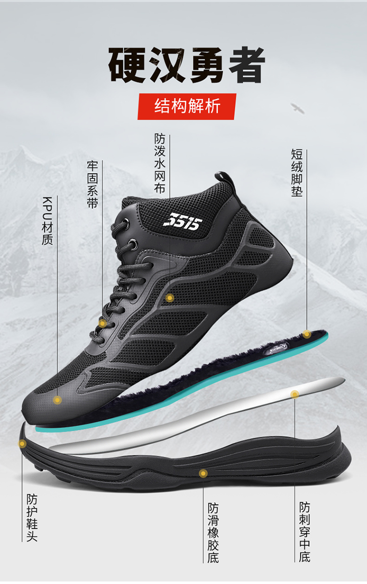 强人3515户外训练鞋男冬季保暖加绒短靴高帮作训鞋军勾男棉鞋 商品图3