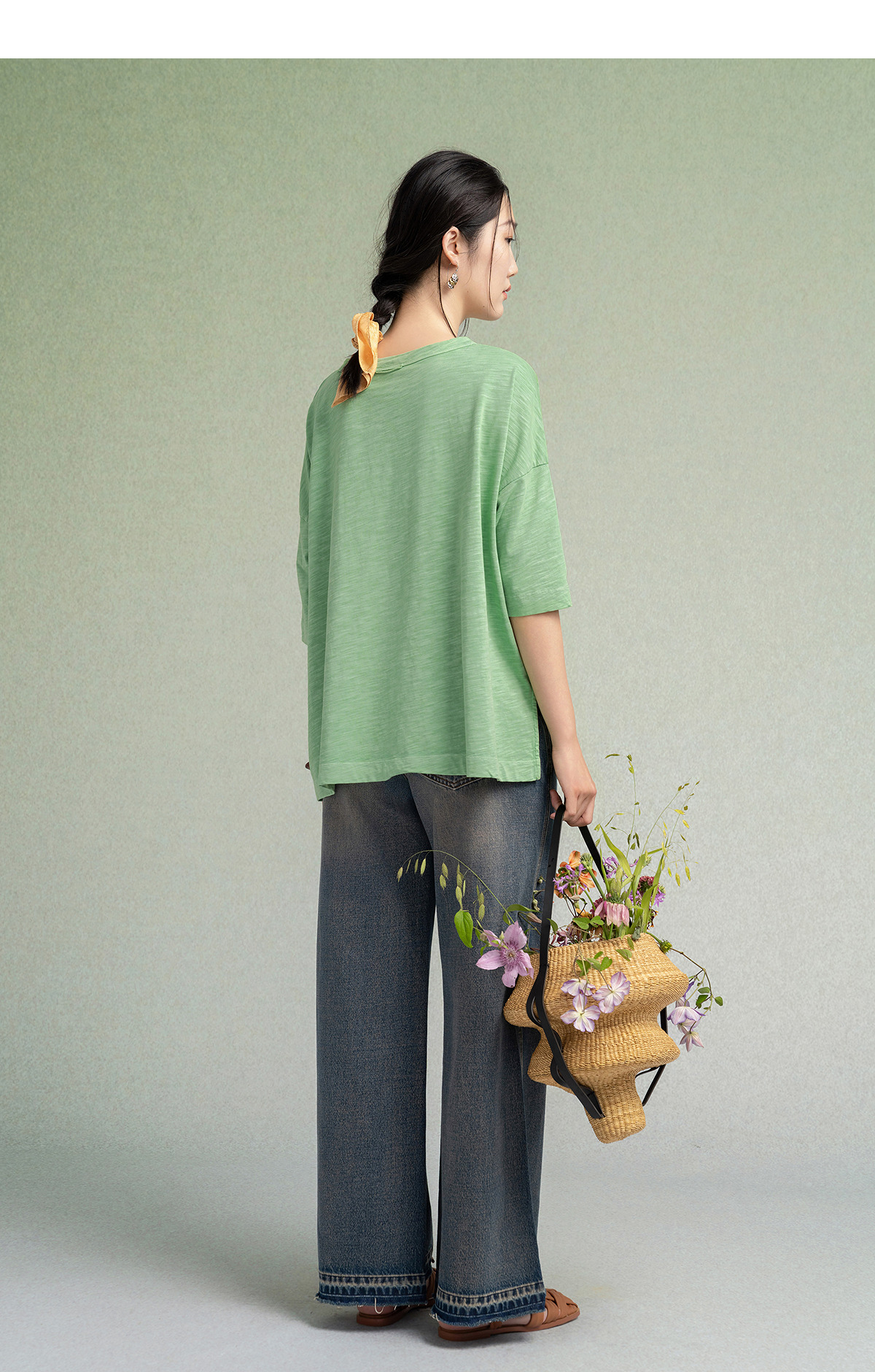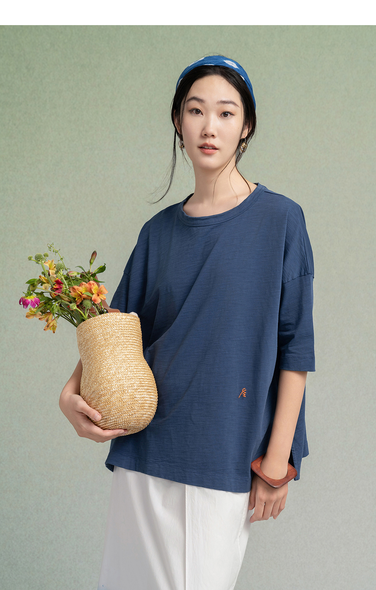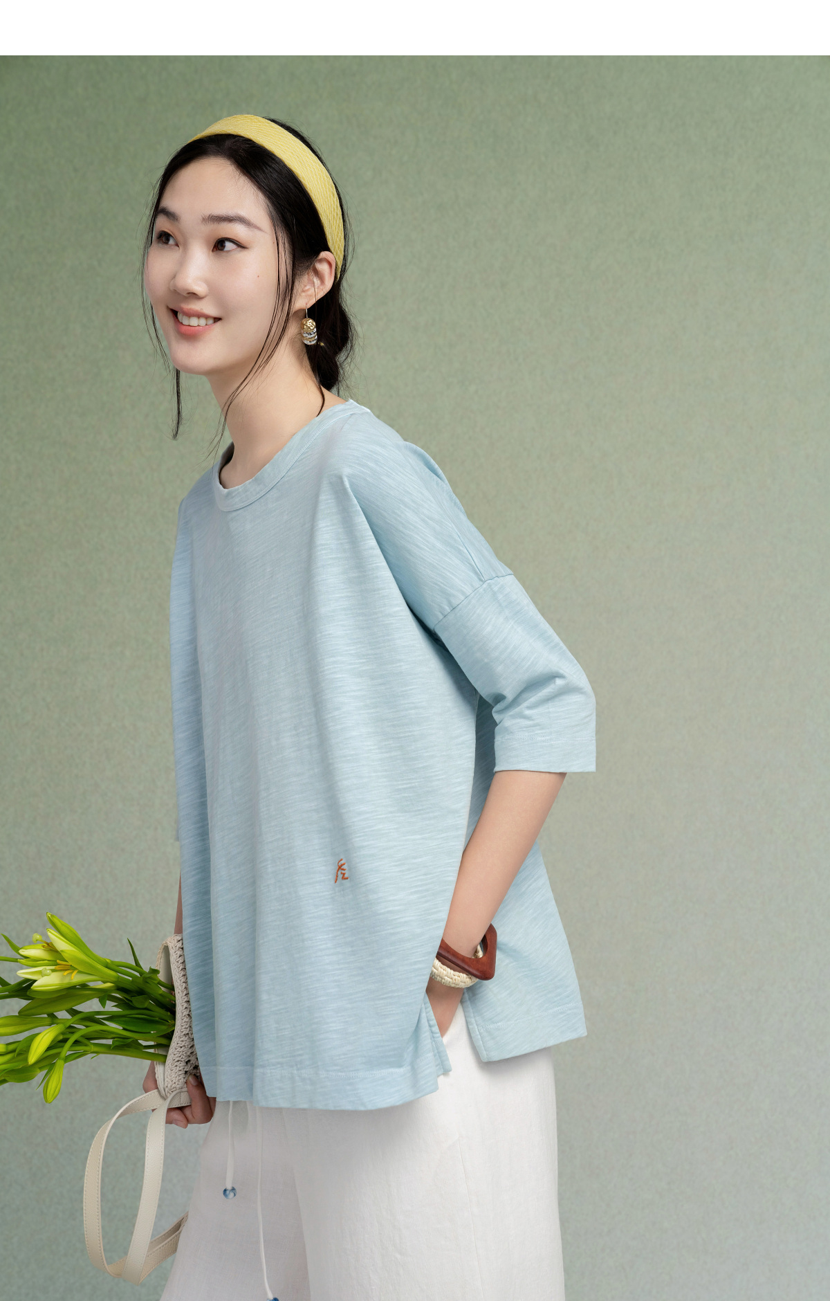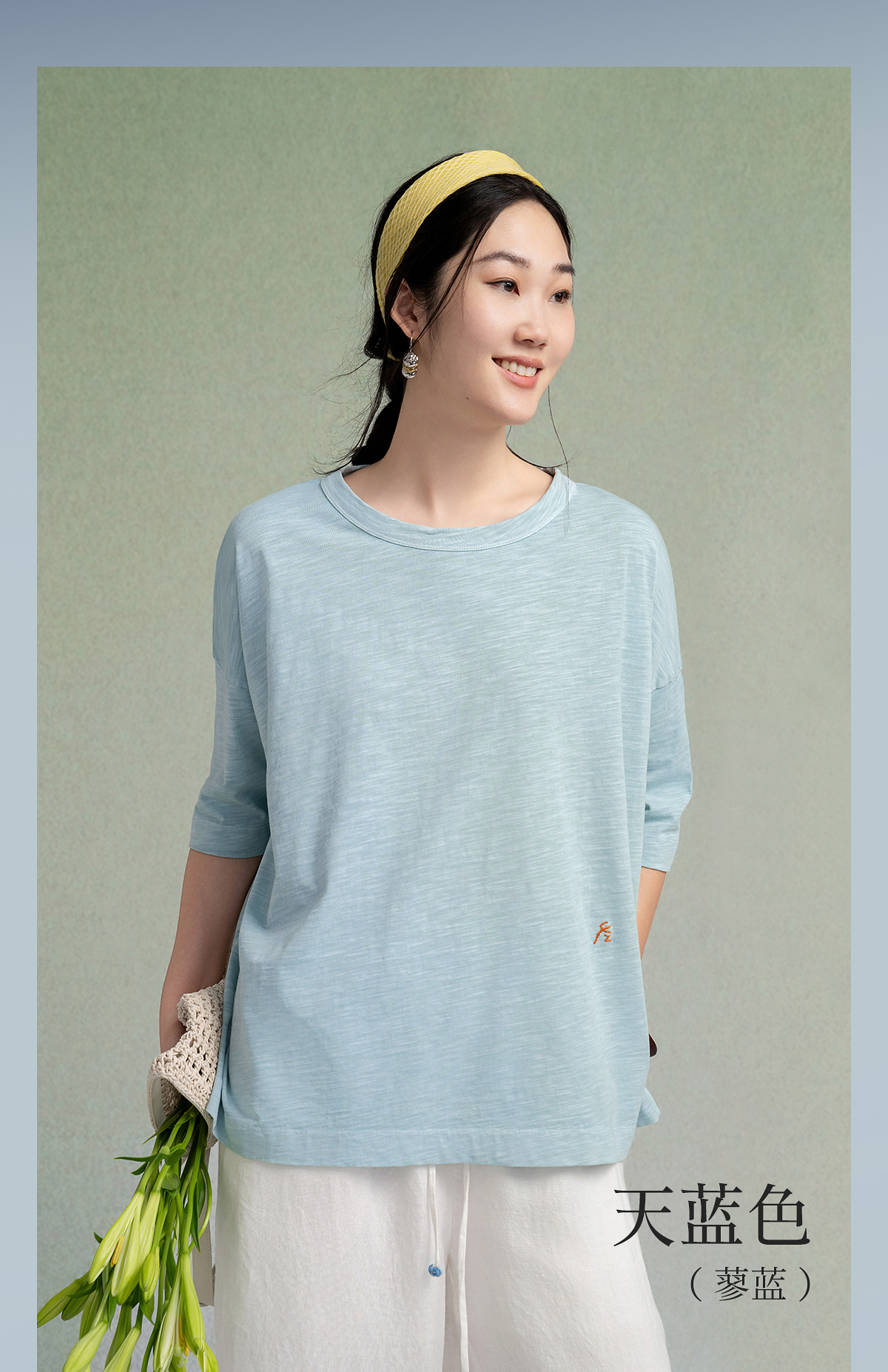 【林栖设计小店】【植物染】生活在左纯棉T恤手工绣花百搭多色2025秋季新款短袖女1953218B