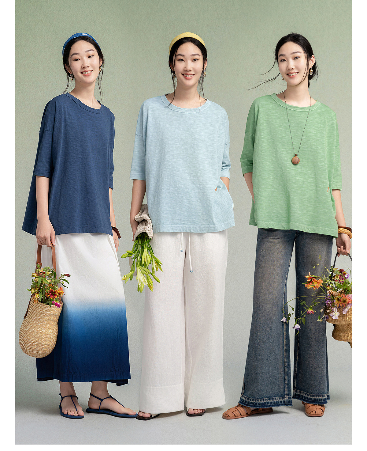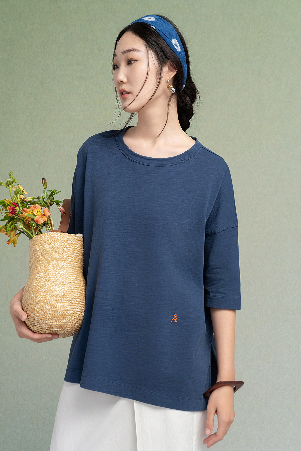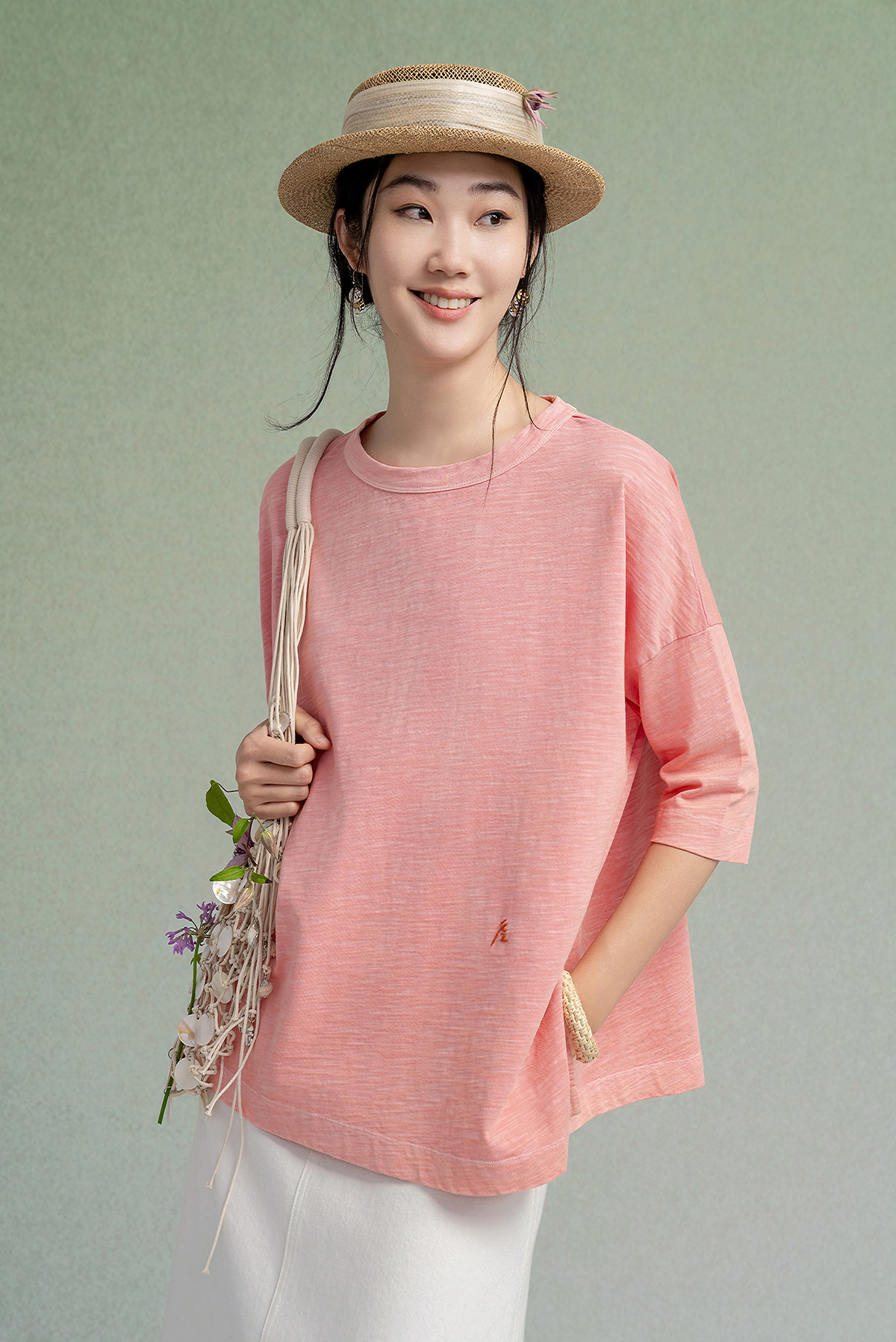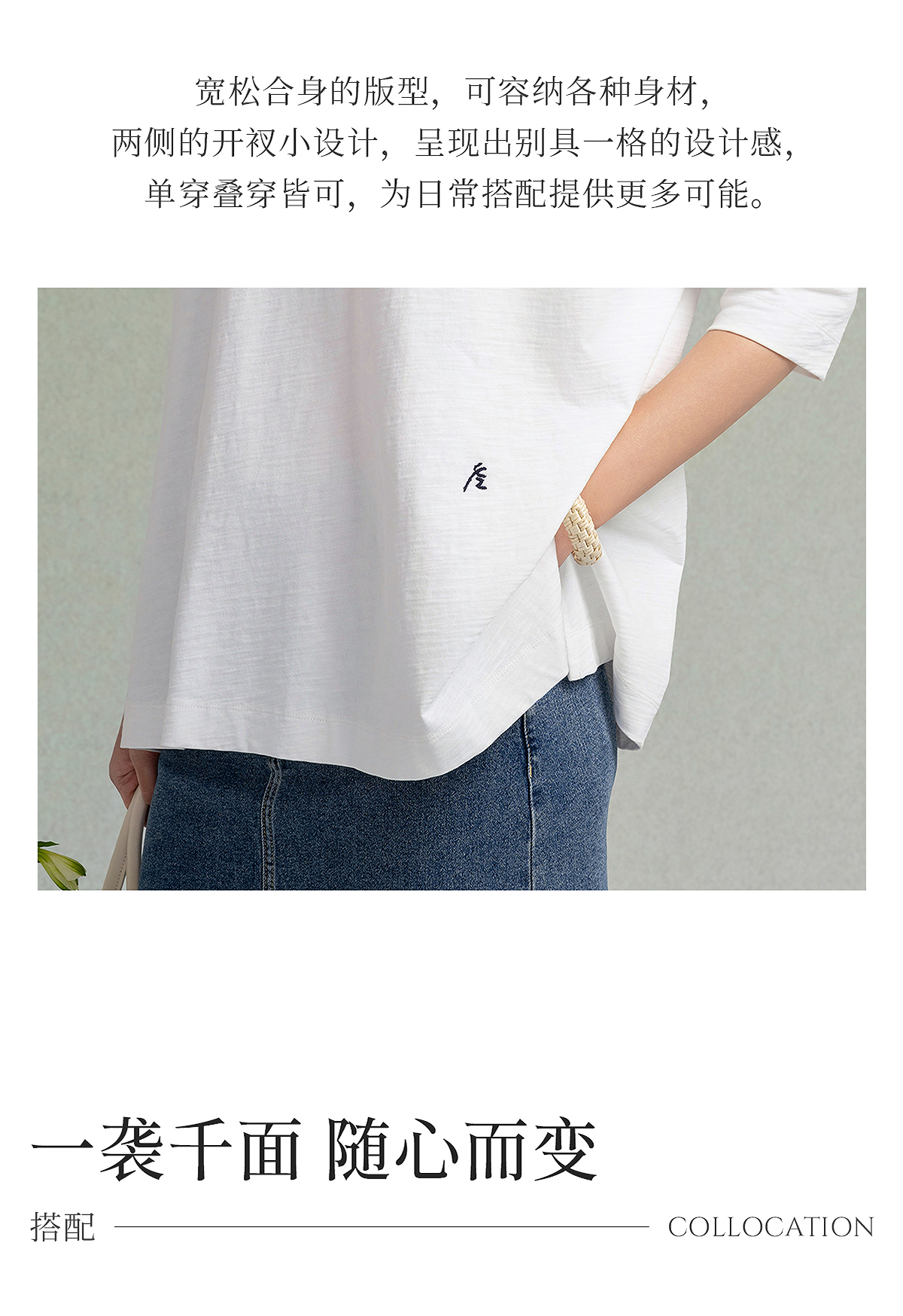 【林栖设计小店】【植物染】生活在左纯棉T恤手工绣花百搭多色2025秋季新款短袖女1953218B