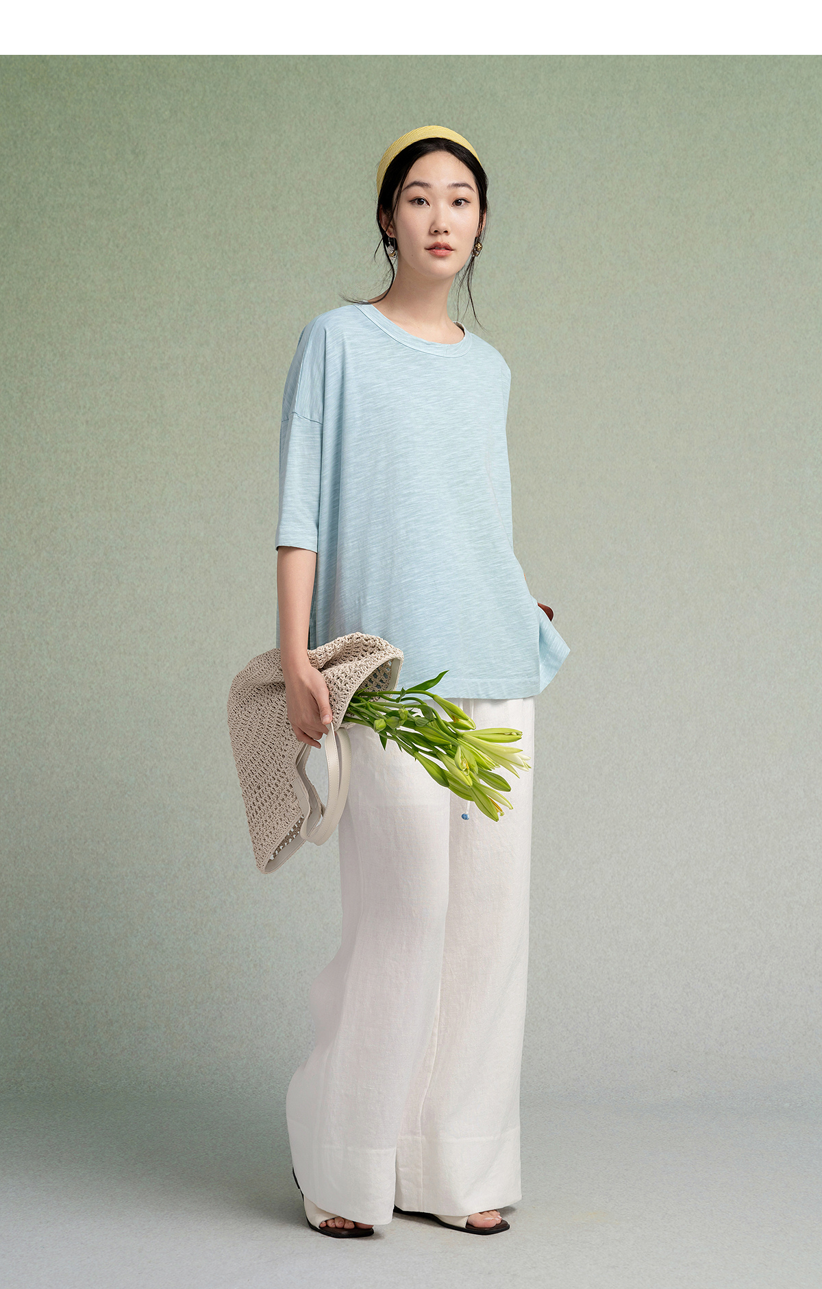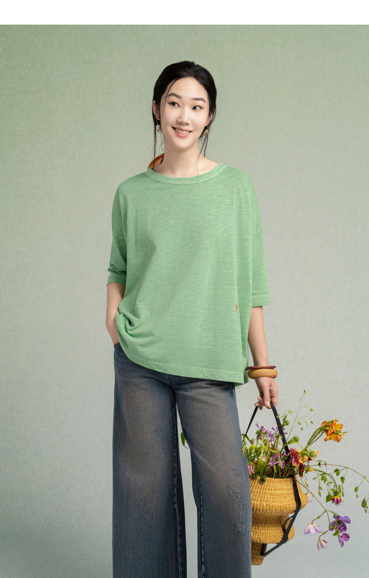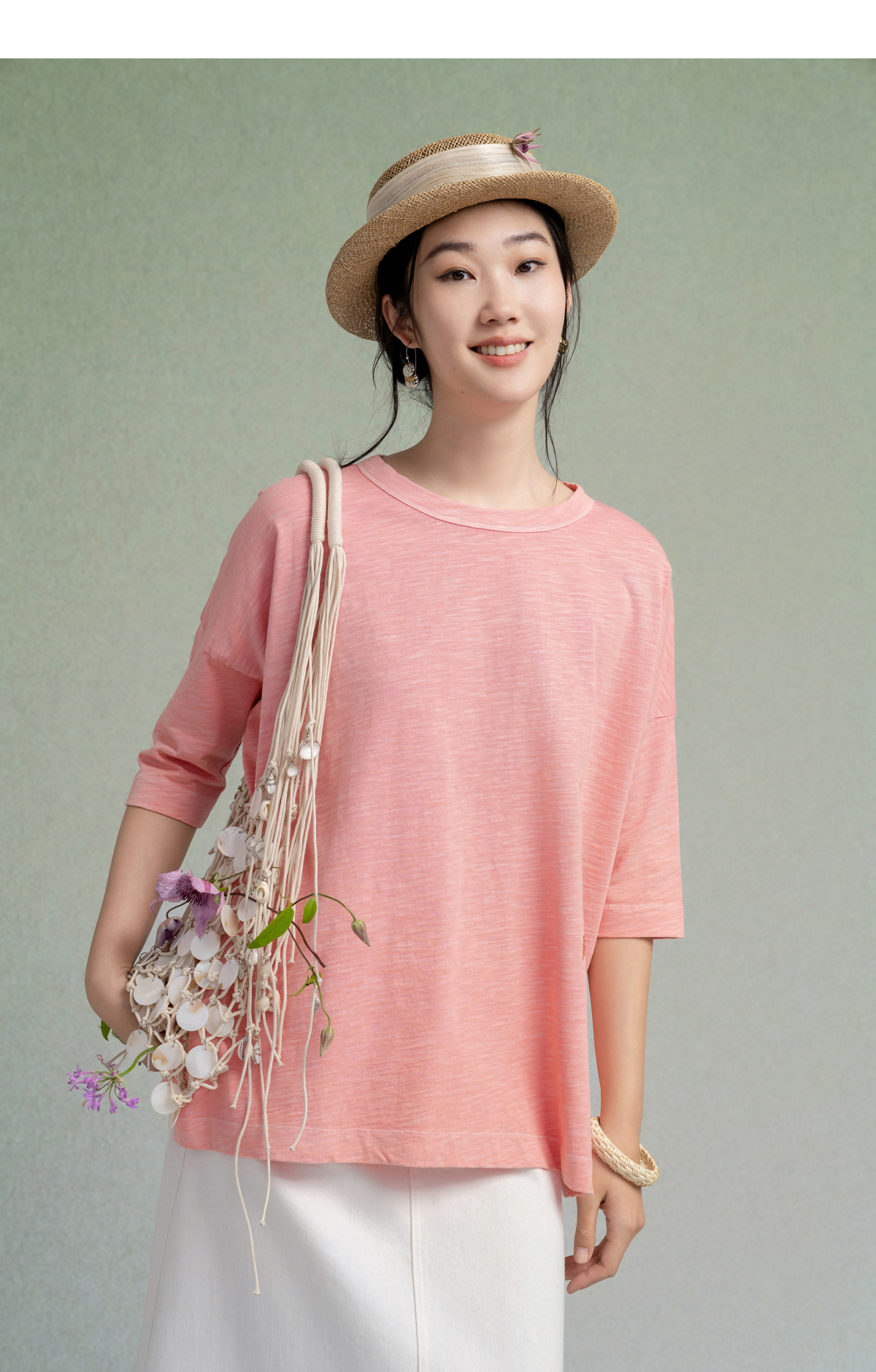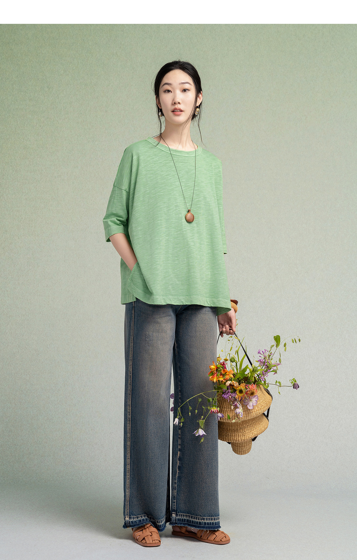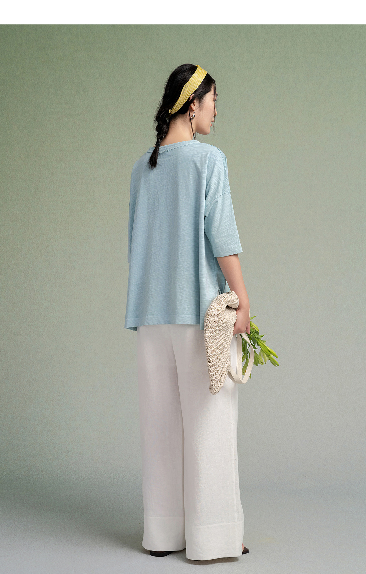 【林栖设计小店】【植物染】生活在左纯棉T恤手工绣花百搭多色2025秋季新款短袖女1953218B
