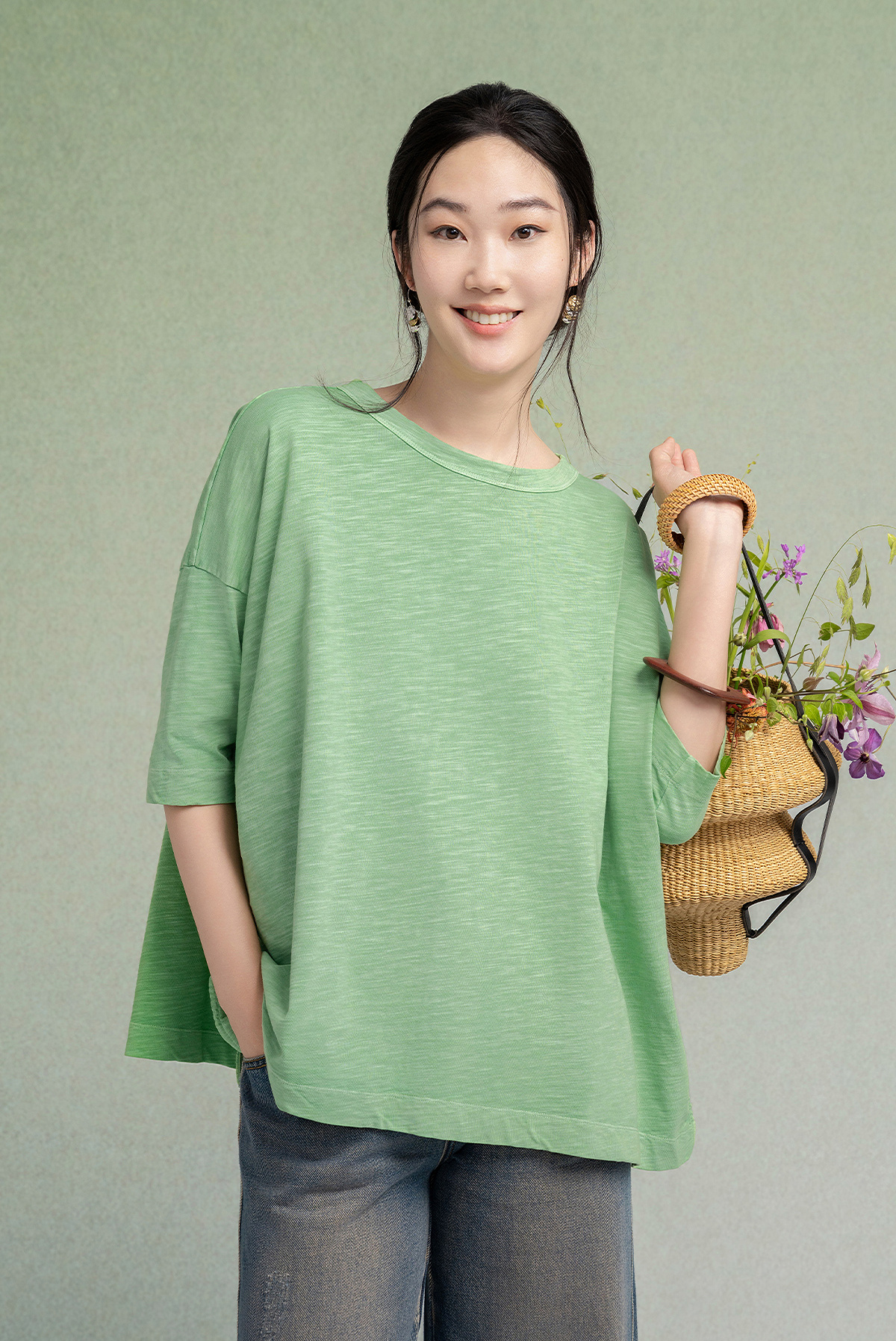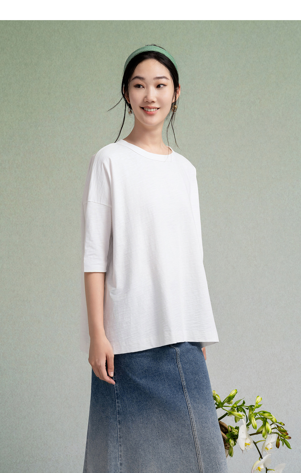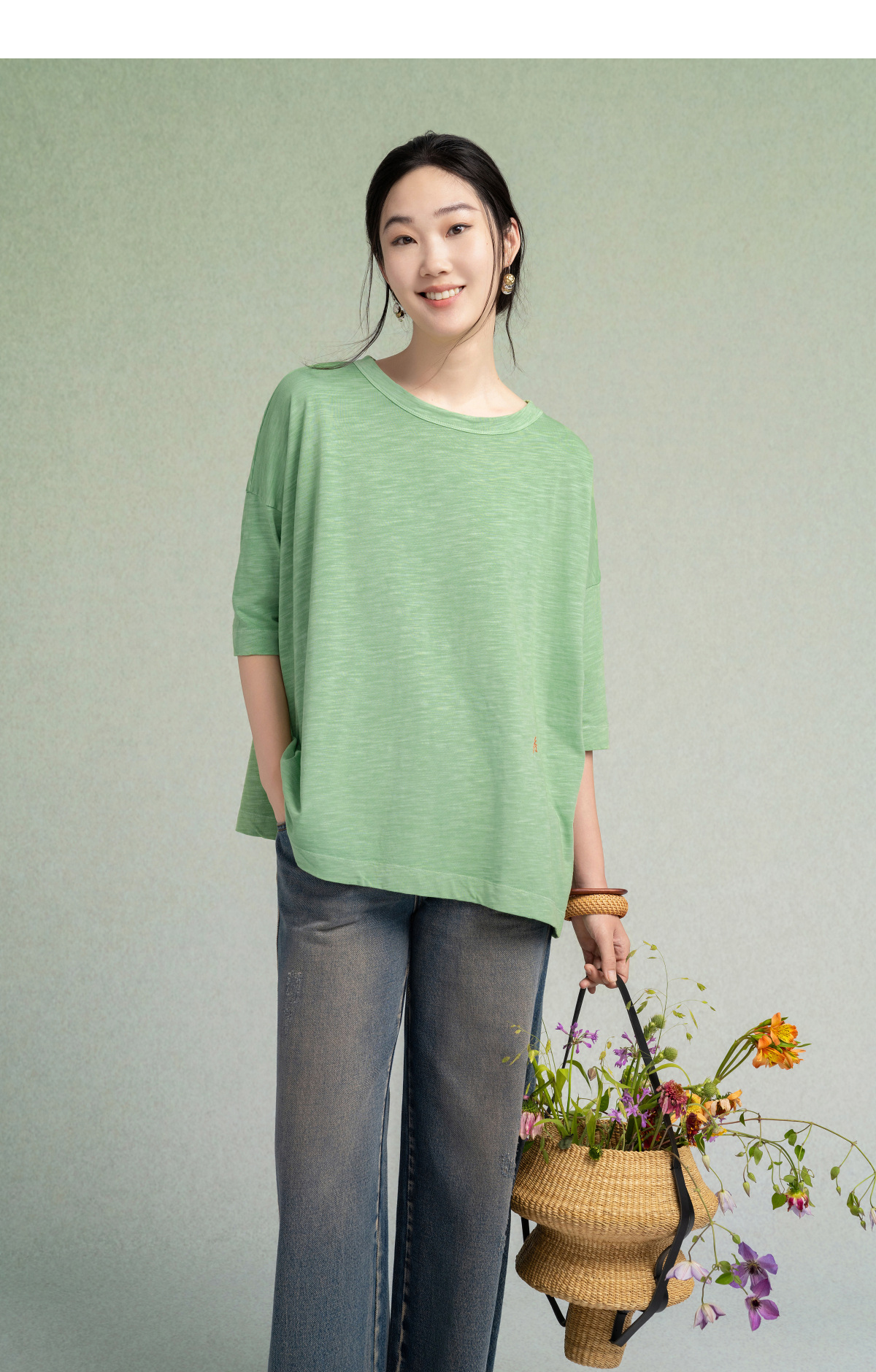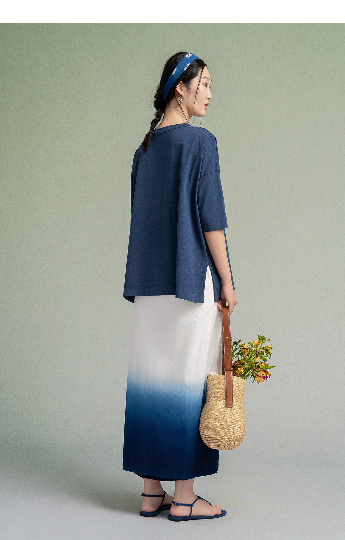 【林栖设计小店】【植物染】生活在左纯棉T恤手工绣花百搭多色2025秋季新款短袖女1953218B
