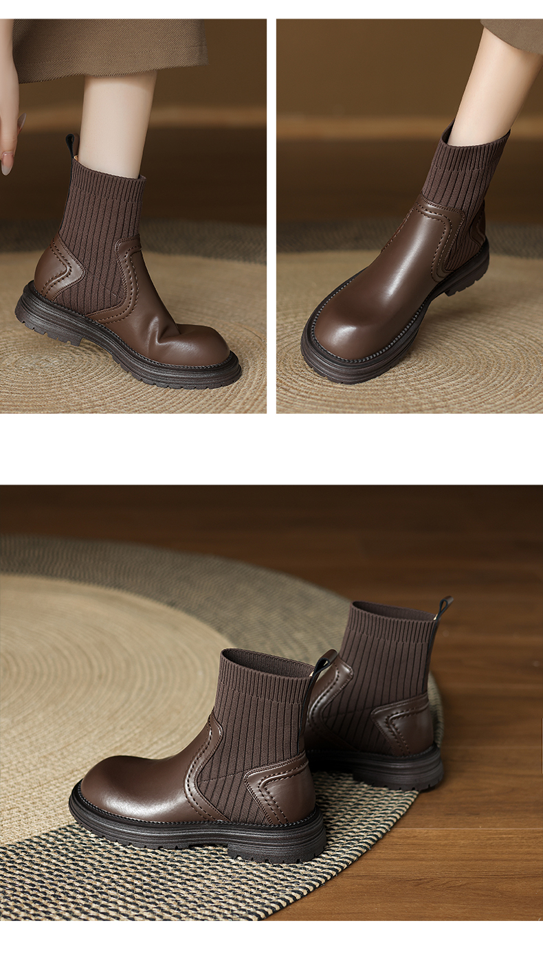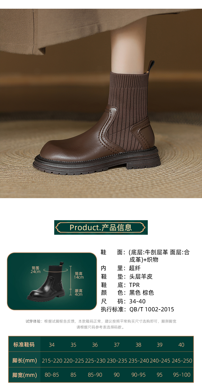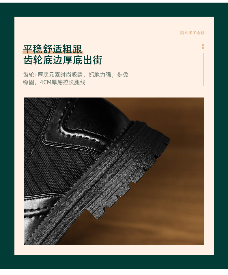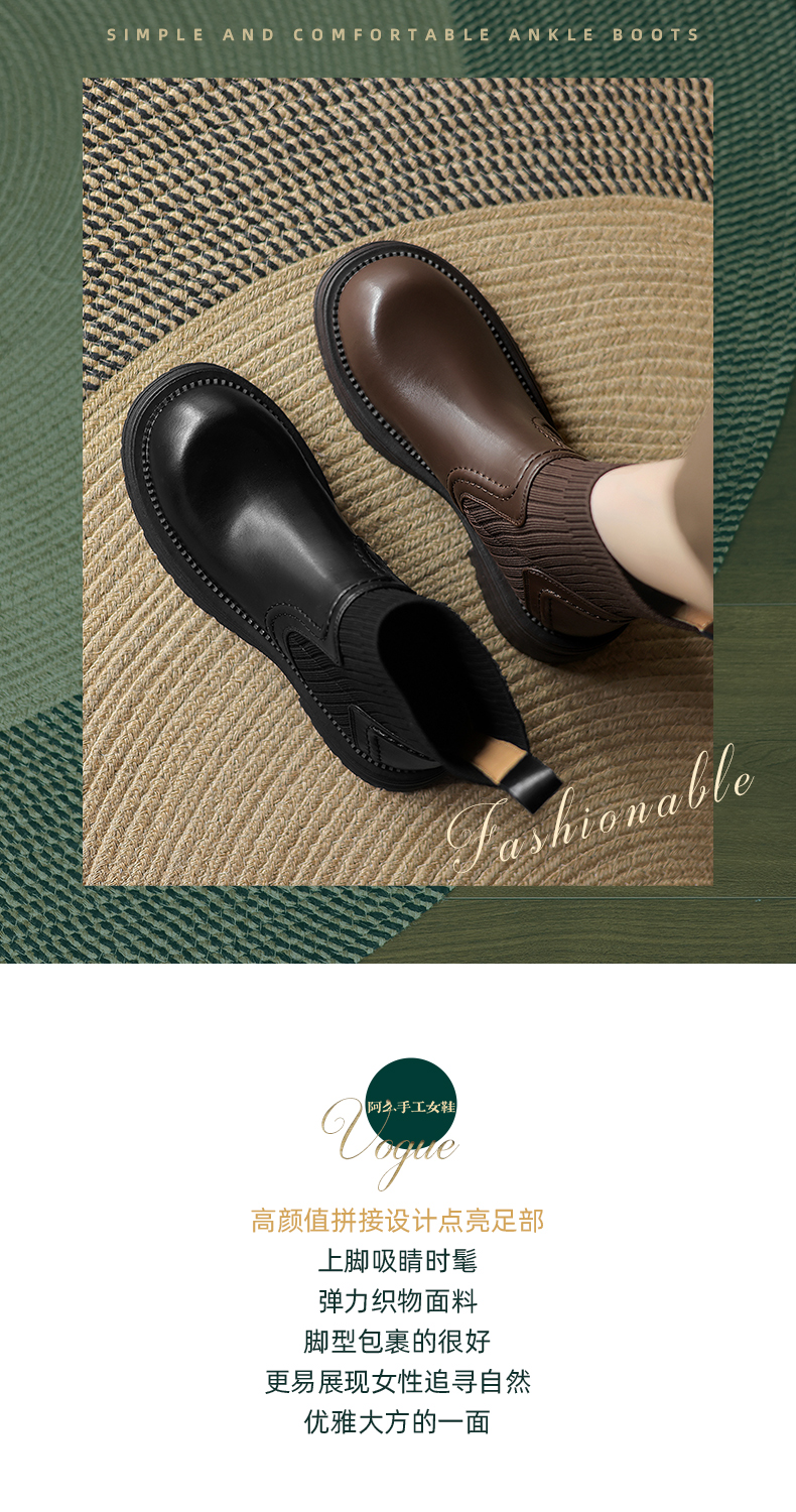 阿么手工女鞋英伦风厚底袜靴耐磨4CM圆头短靴女2025新款显瘦百搭