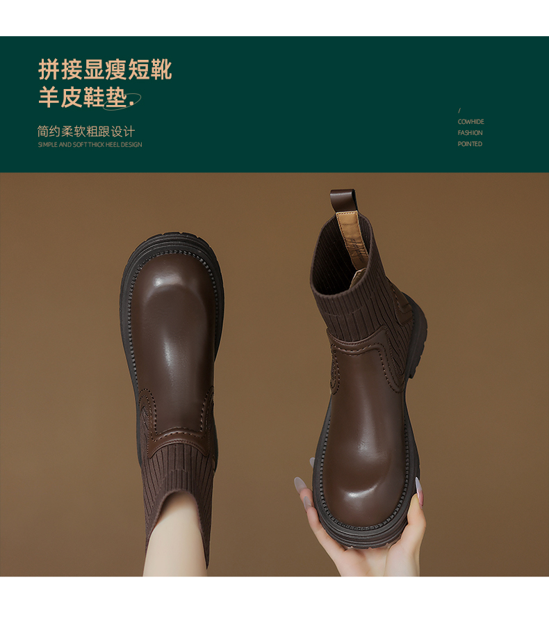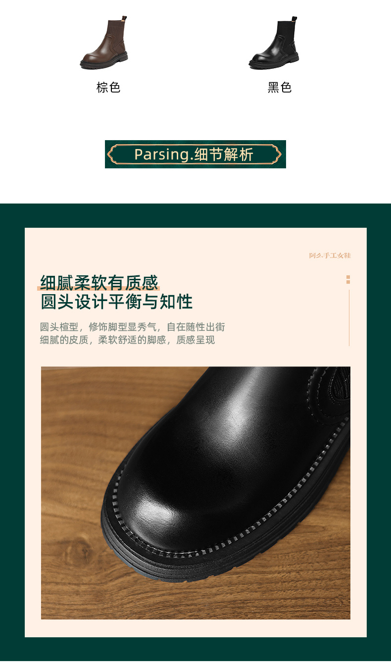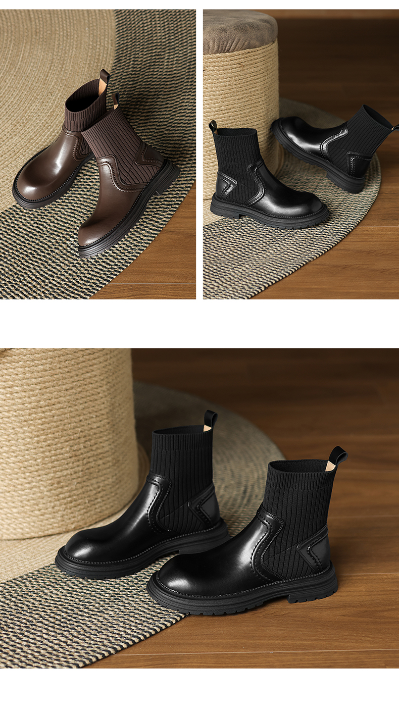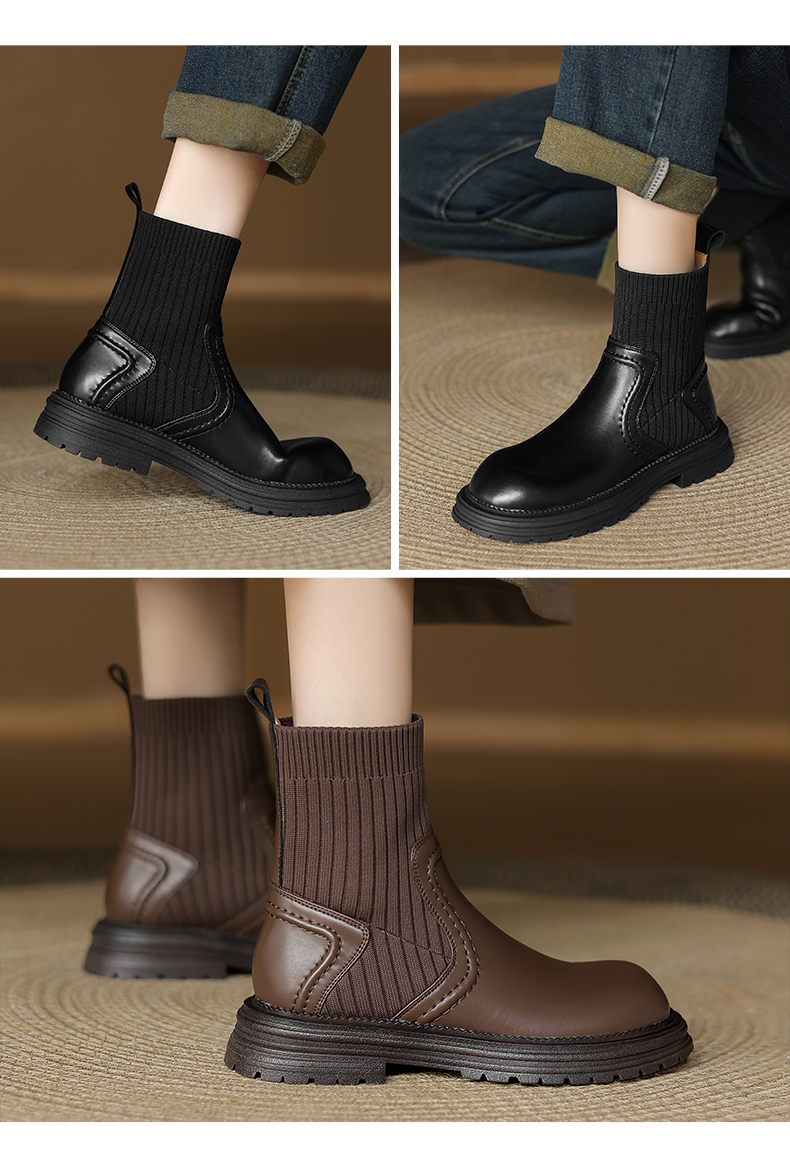 阿么手工女鞋英伦风厚底袜靴耐磨4CM圆头短靴女2025新款显瘦百搭
