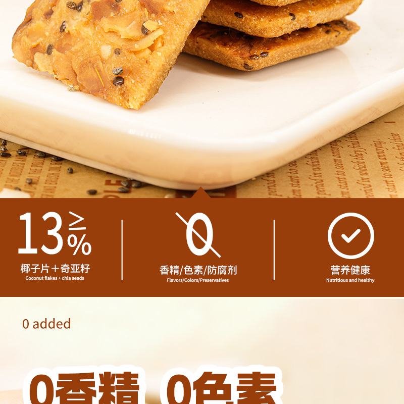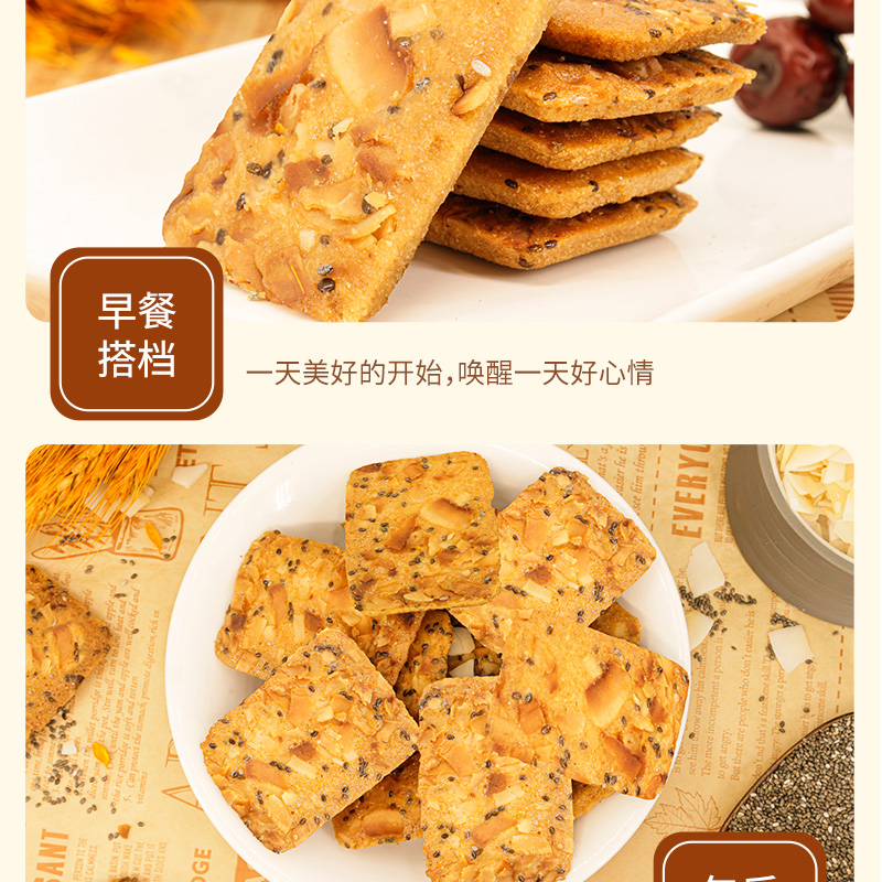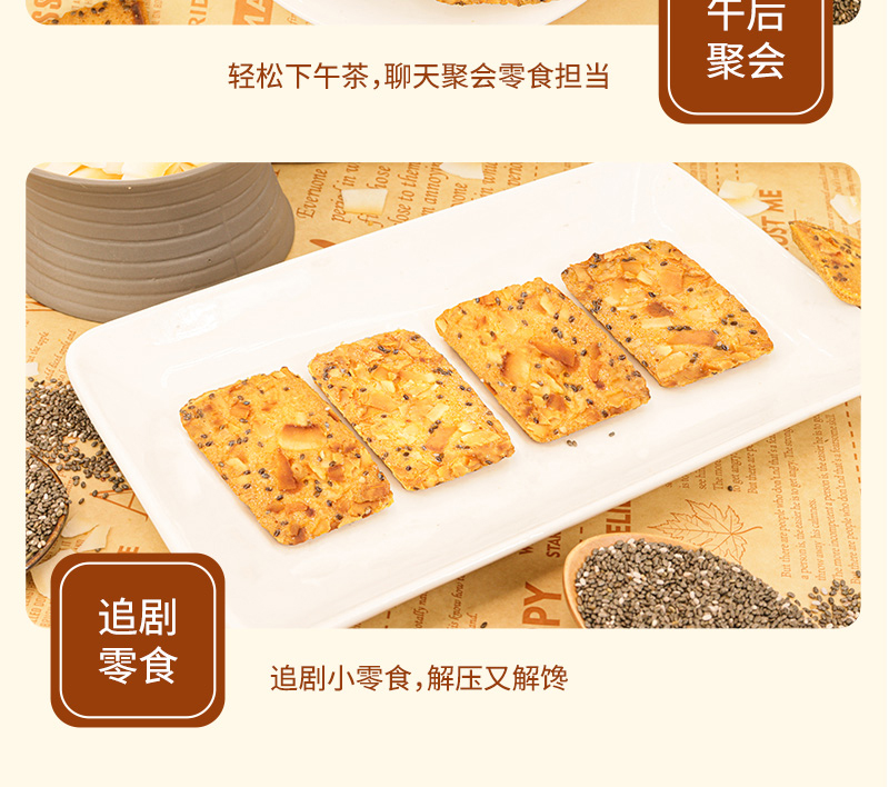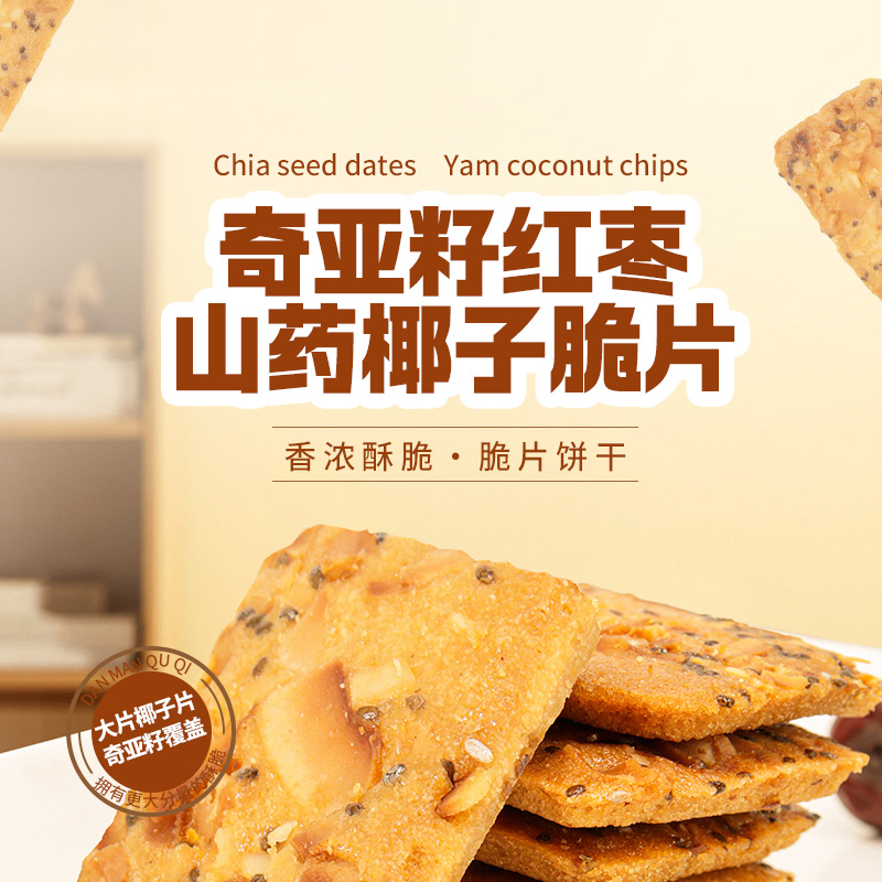 奇亚籽红枣山药椰子薄脆饼干浓郁椰香健康解馋办公室休闲零食