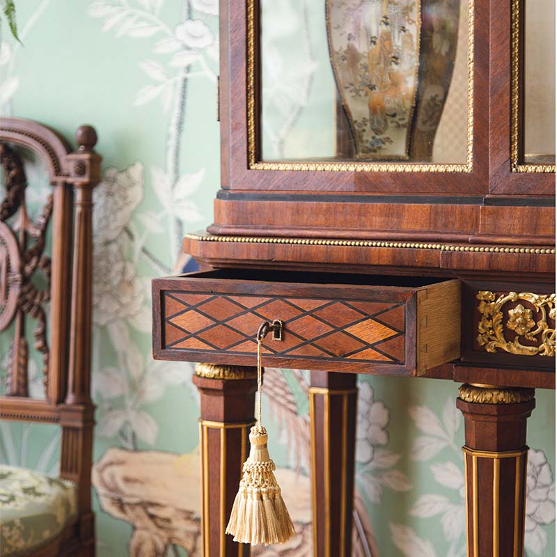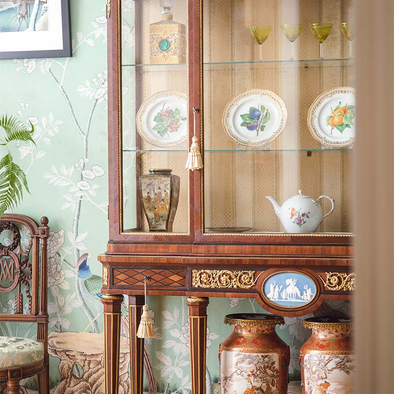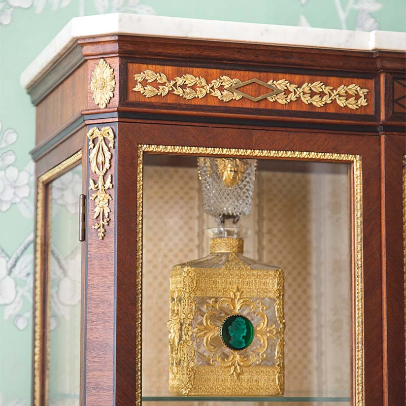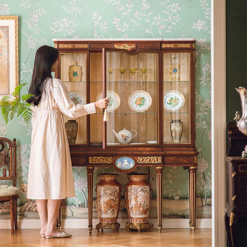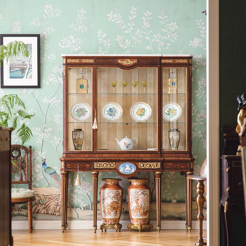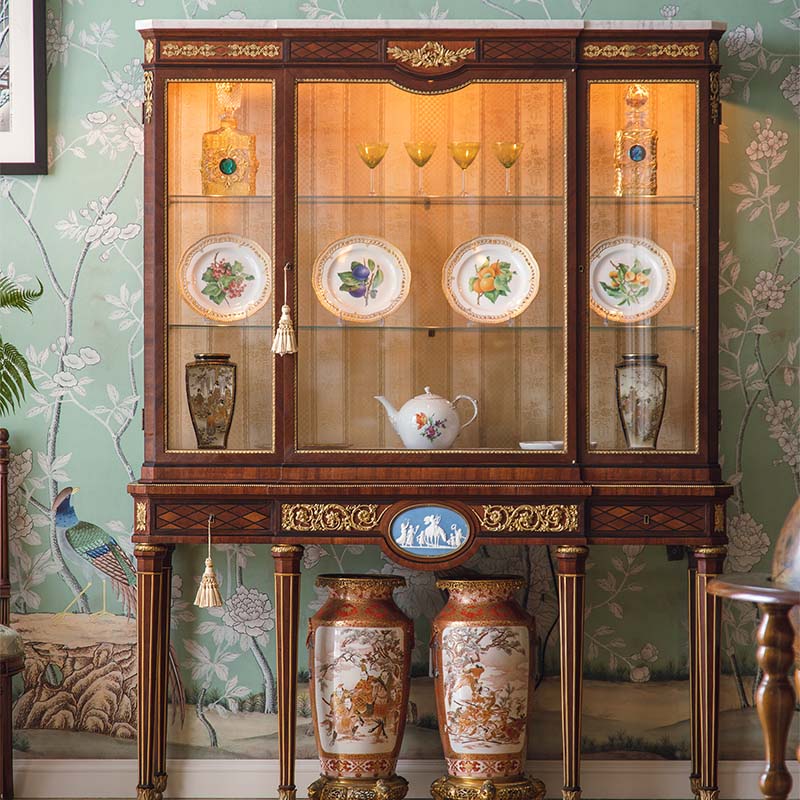 独角鹿西洋古董法国出品路易十六风格卷叶纹铜鎏金精雕韦奇伍德瓷板画嵌大理石顶硬木别墅玻璃展柜古董家具
