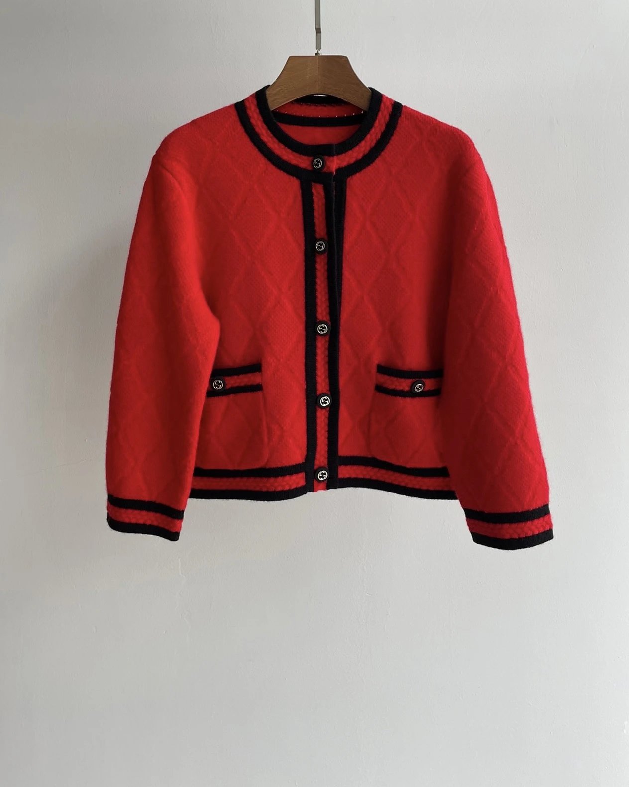 重磅渠道 双G香风菱格羊毛开衫 短款针织外套 新年限定针织外套