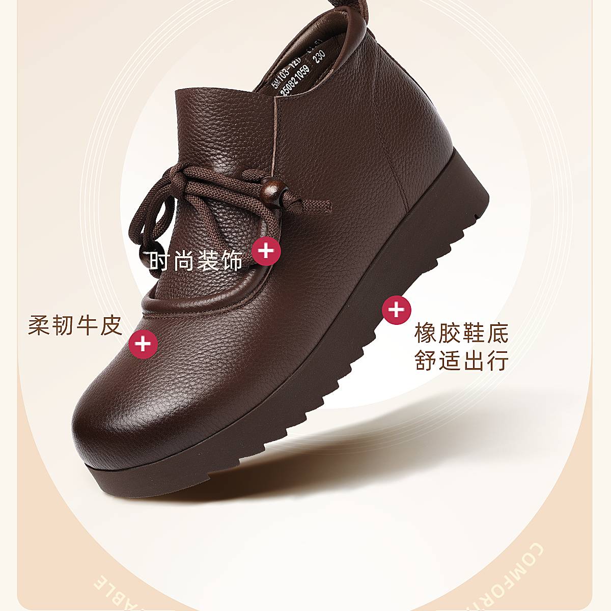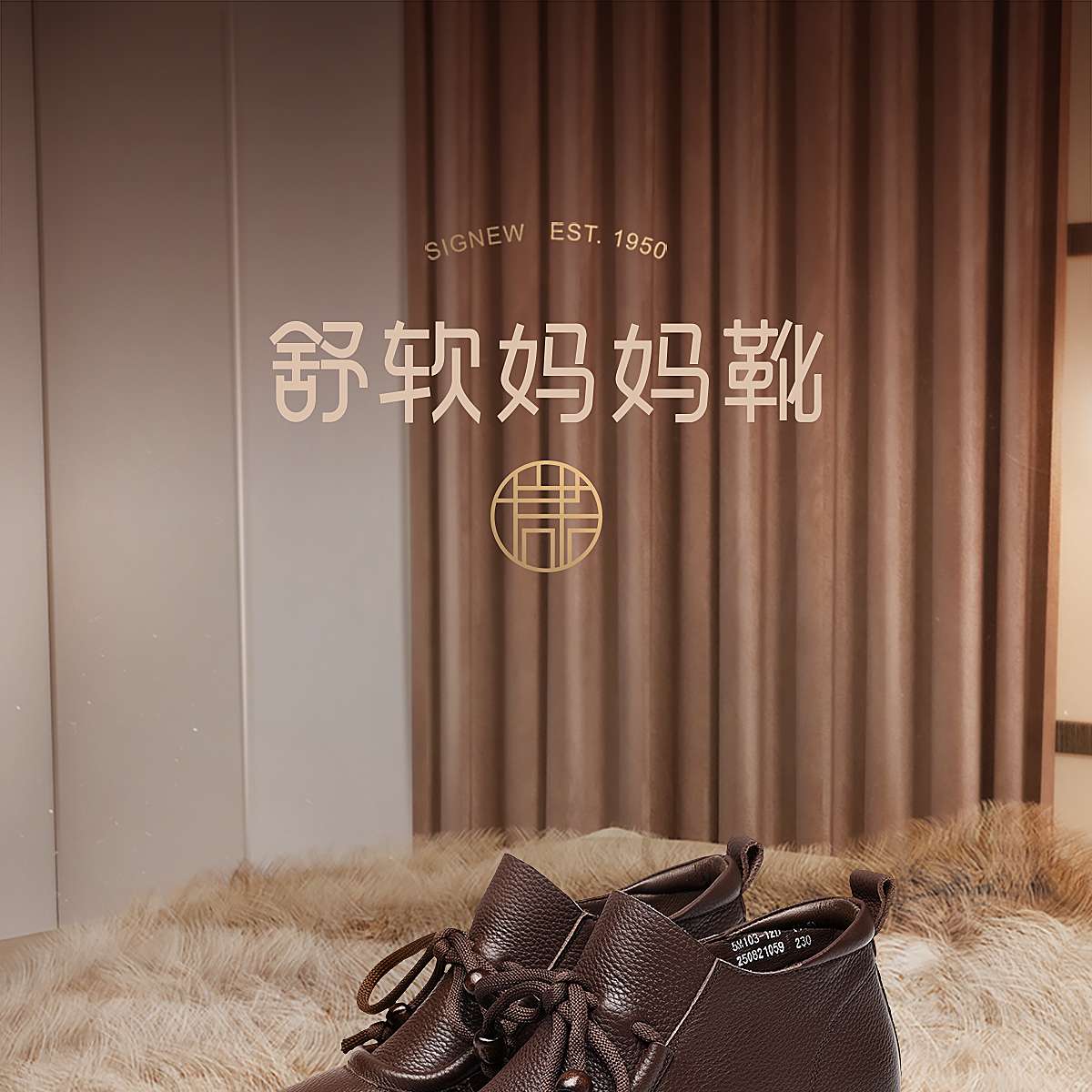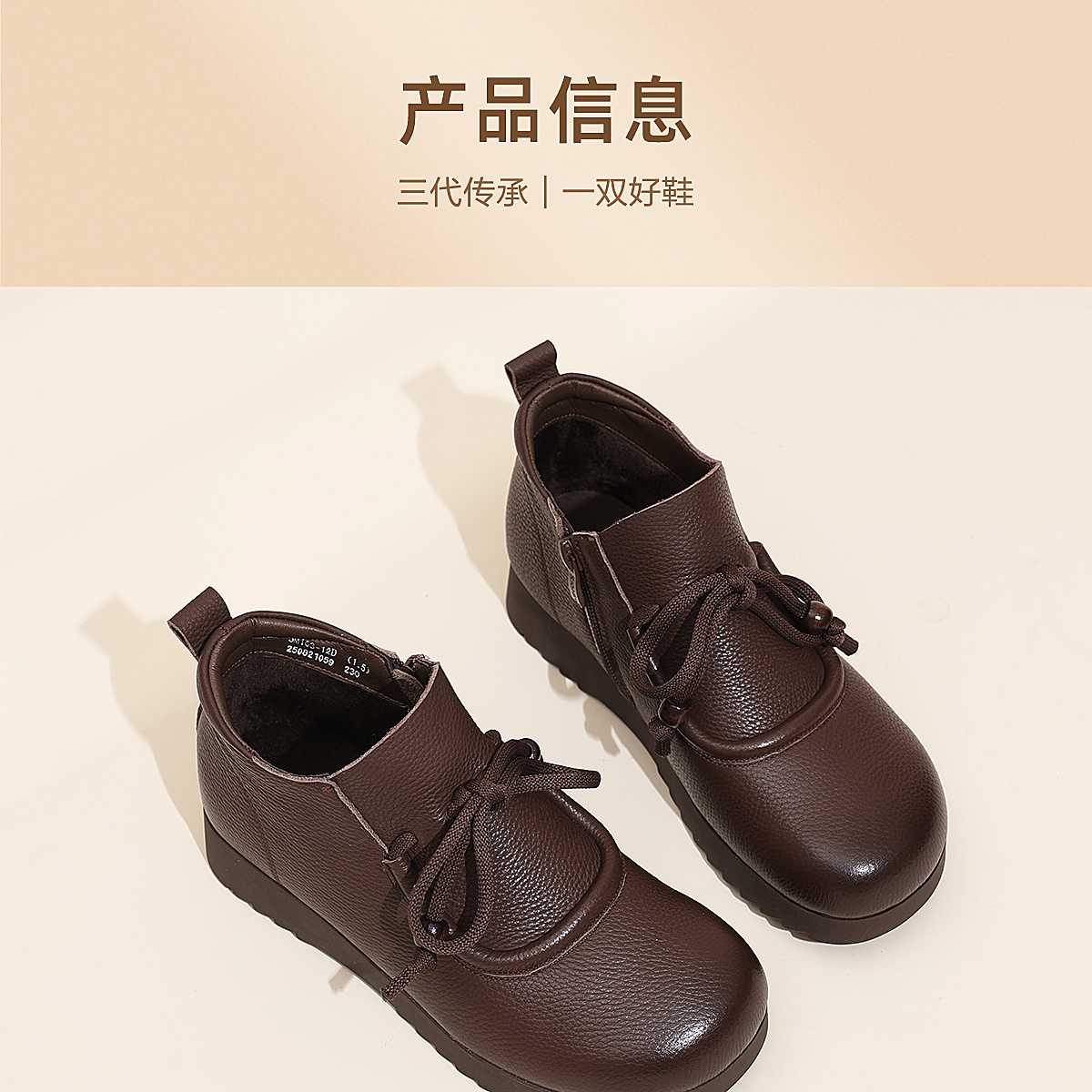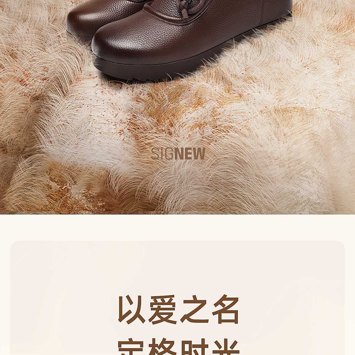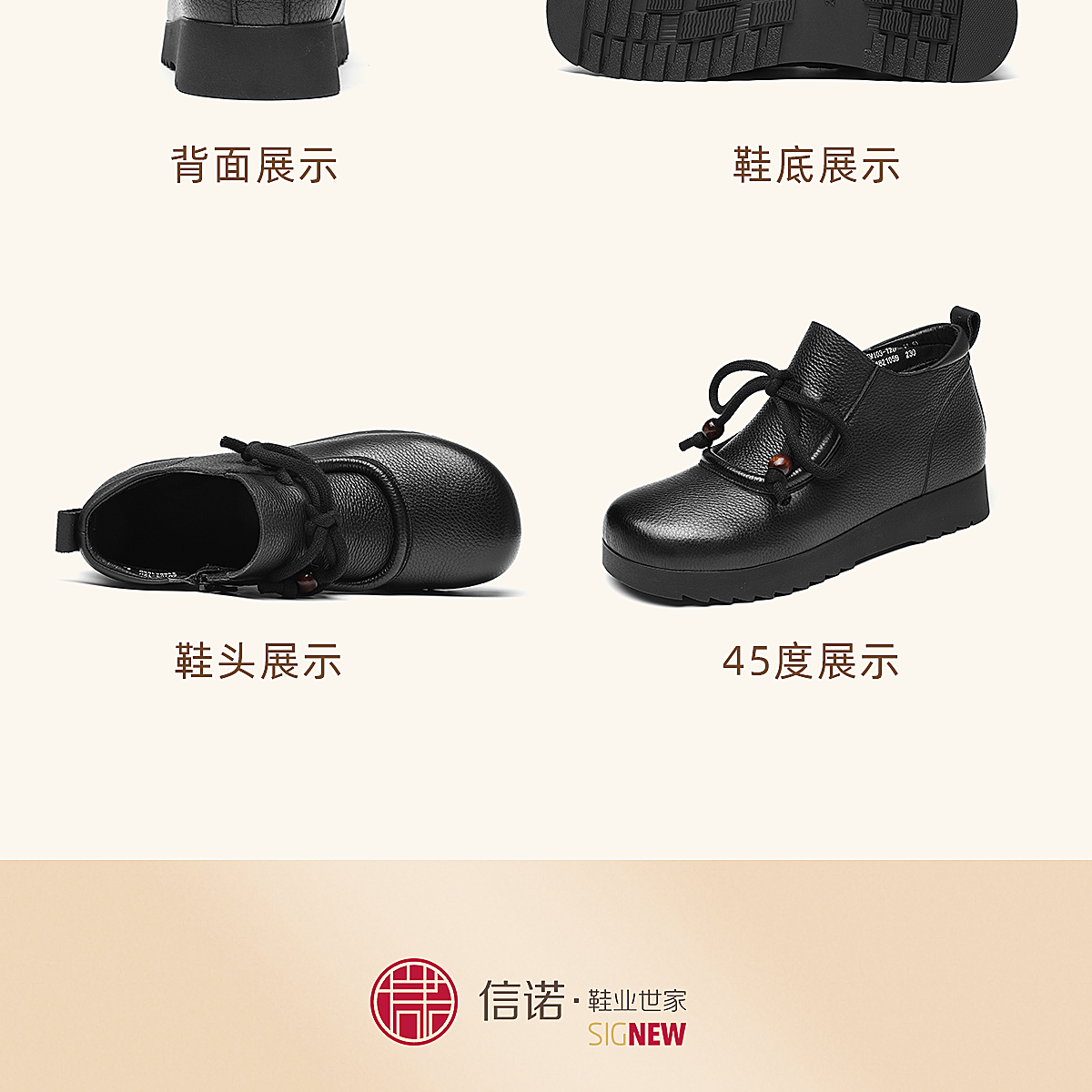 信诺中年妈妈棉鞋软底不累脚女鞋子舒适加绒休闲短靴2025新款冬季5M103-12D