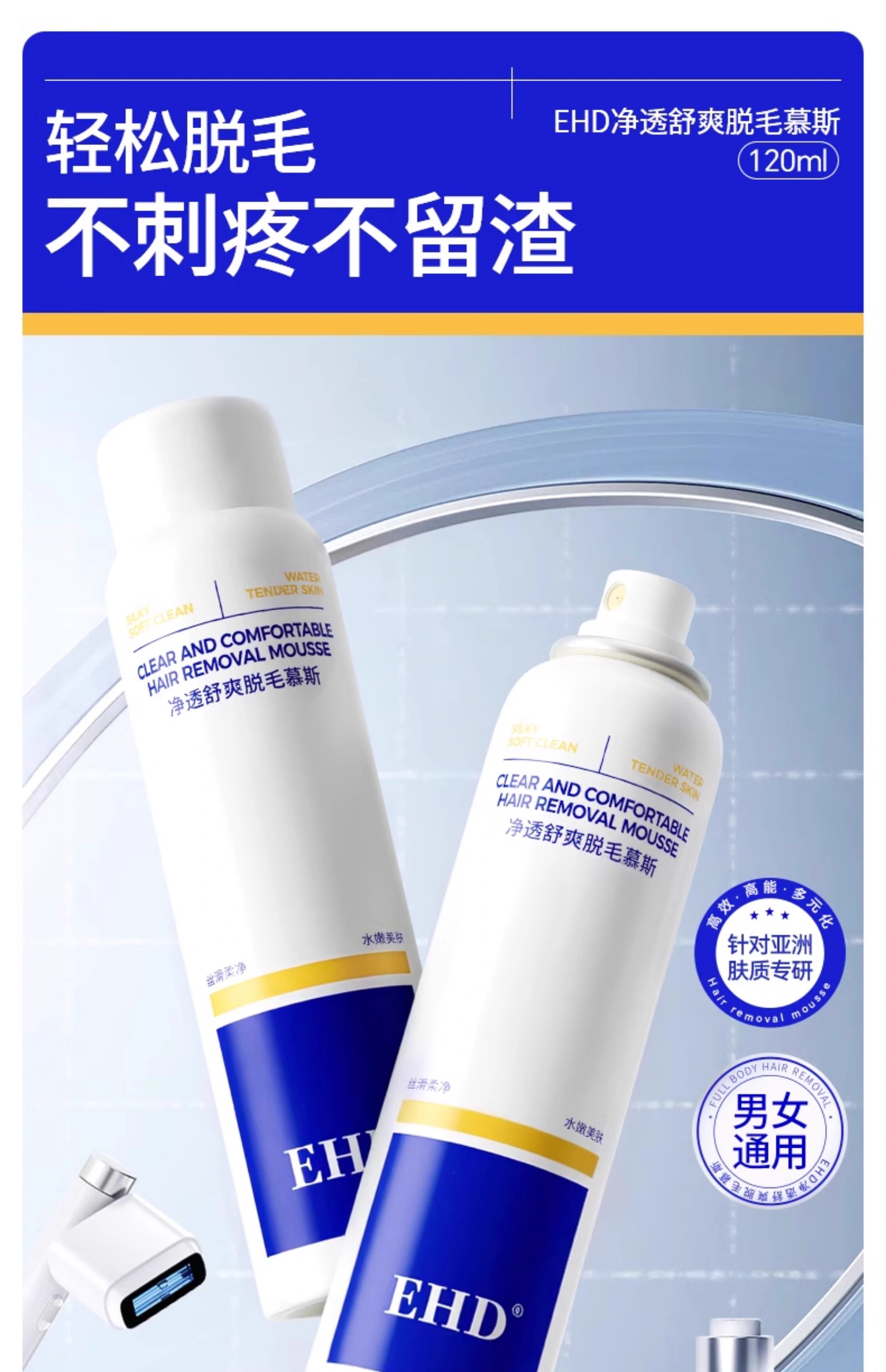 【品牌直发】EHD 脱毛膏60g/脱毛喷雾泡沫慕斯120ml 腋下腿毛胳膊