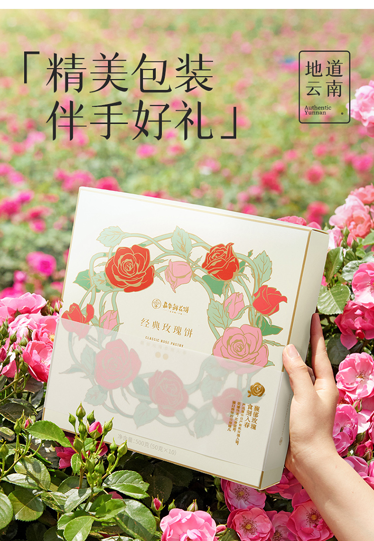 嘉华鲜花饼 嘉华经典玫瑰饼10枚装礼盒500g