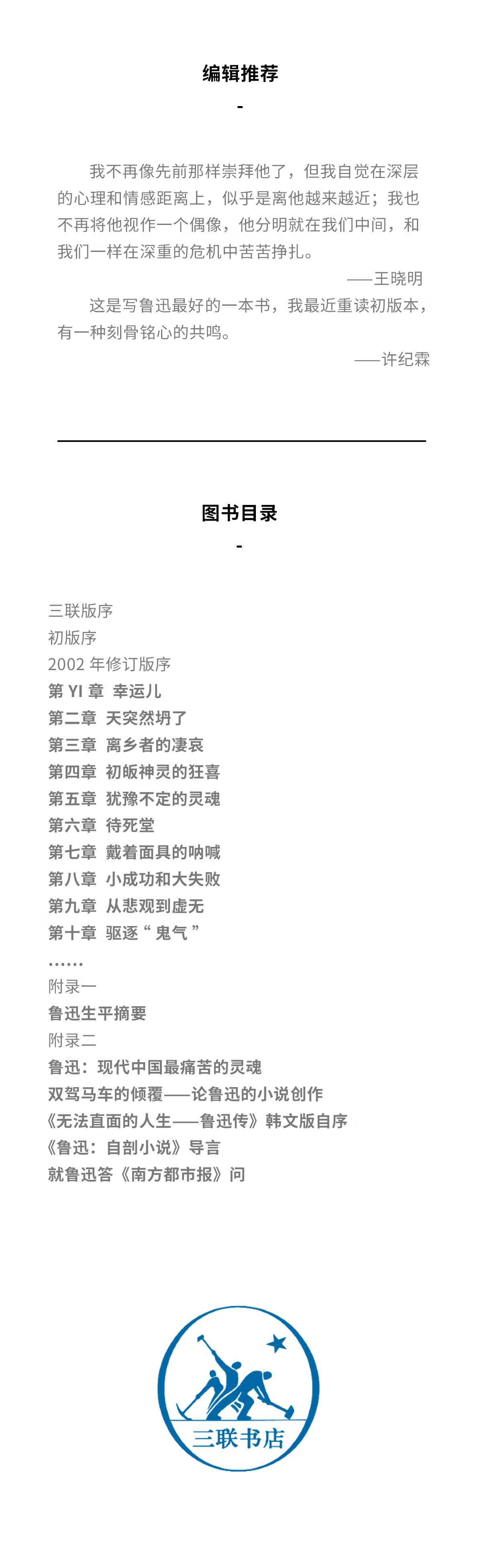 这是写鲁迅最好的一本书,我最近重读初版本,有一种刻骨铭心的共鸣。 ——许纪霖