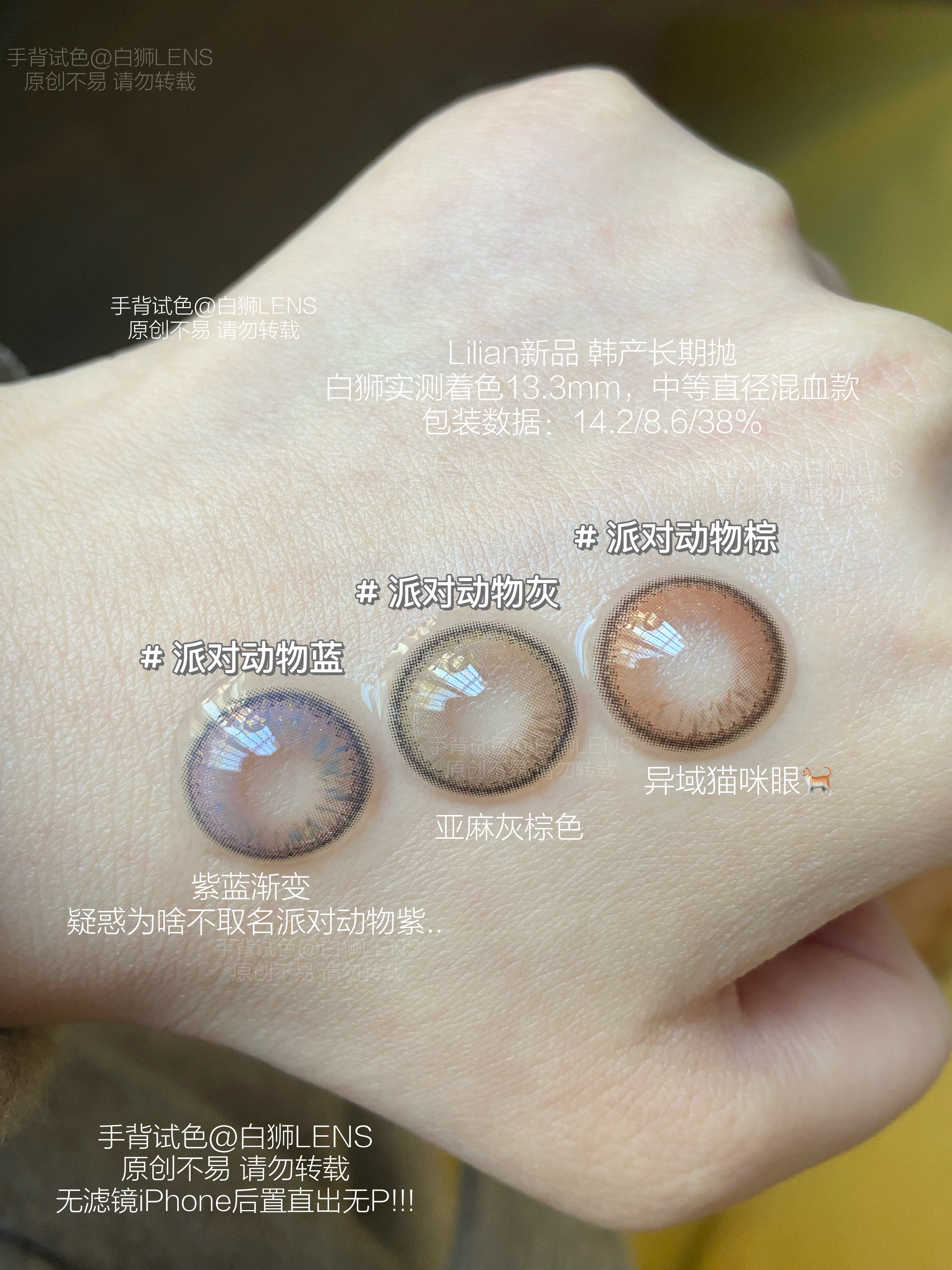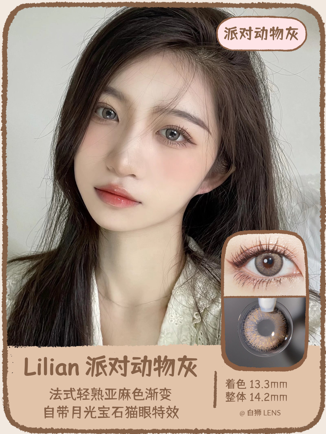 Lilian旗下 · Party系列|派对动物棕 · 派对动物蓝 · 派对动物灰|14.2mm中等直径 年抛美瞳