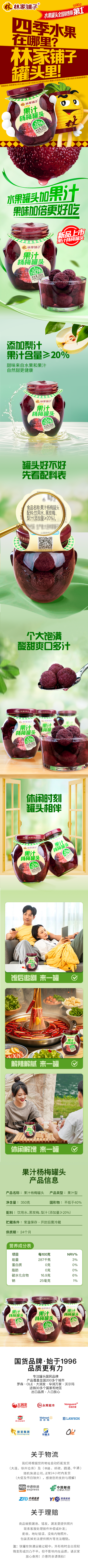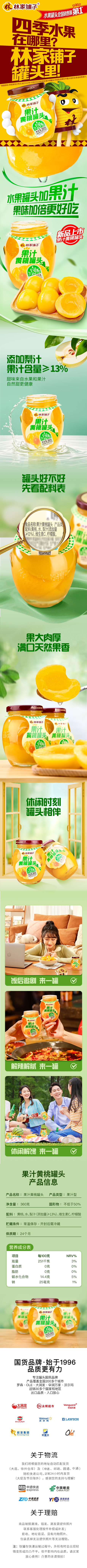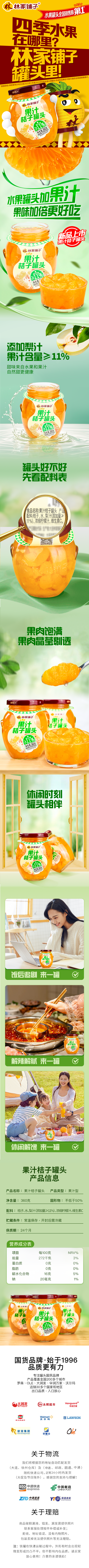 林家铺子果汁水果罐头360g黄桃桔子杨梅玻璃瓶罐头