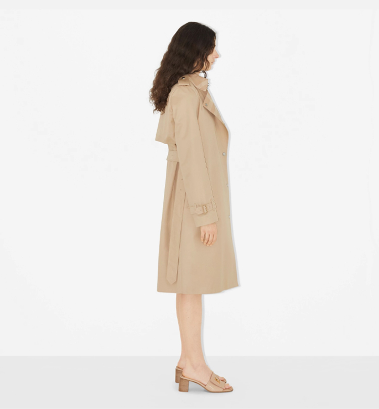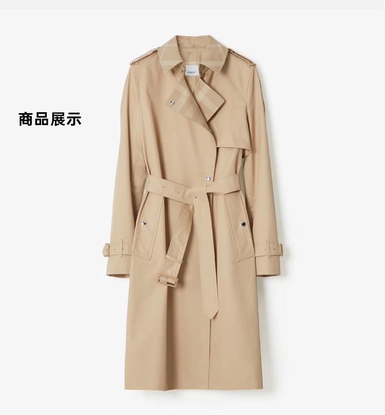 BURBERRY 巴宝莉 女士格纹裁片棉质嘎巴甸 Trench 束腰风衣 卡其色 8065802 A7405