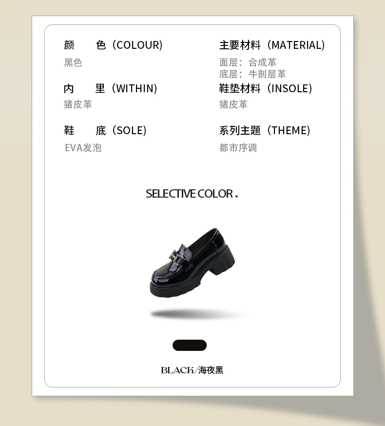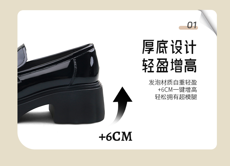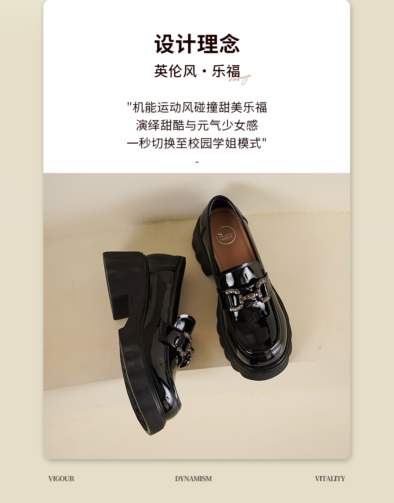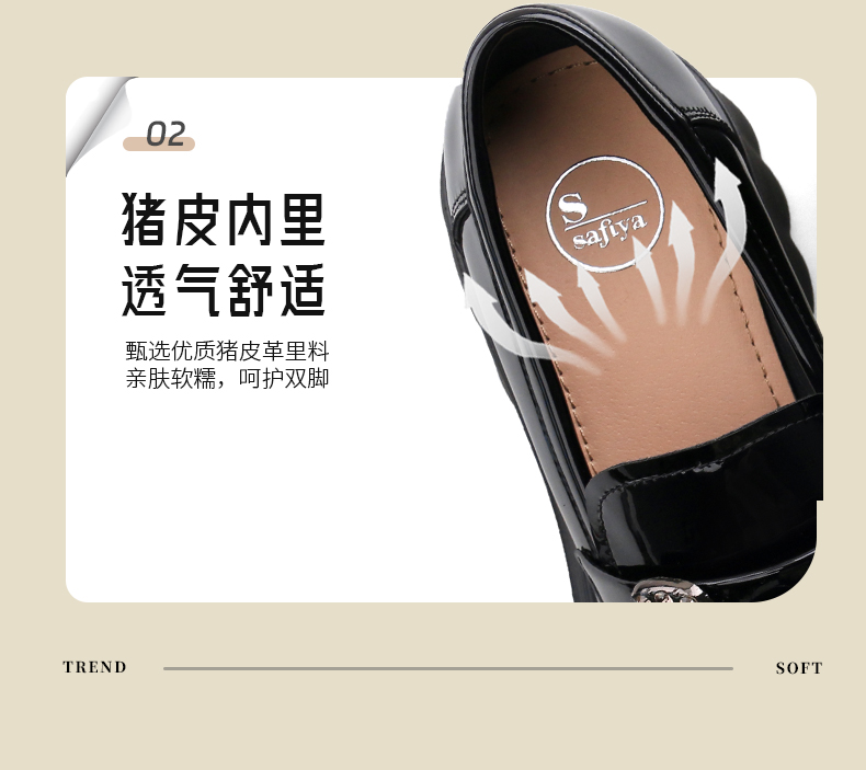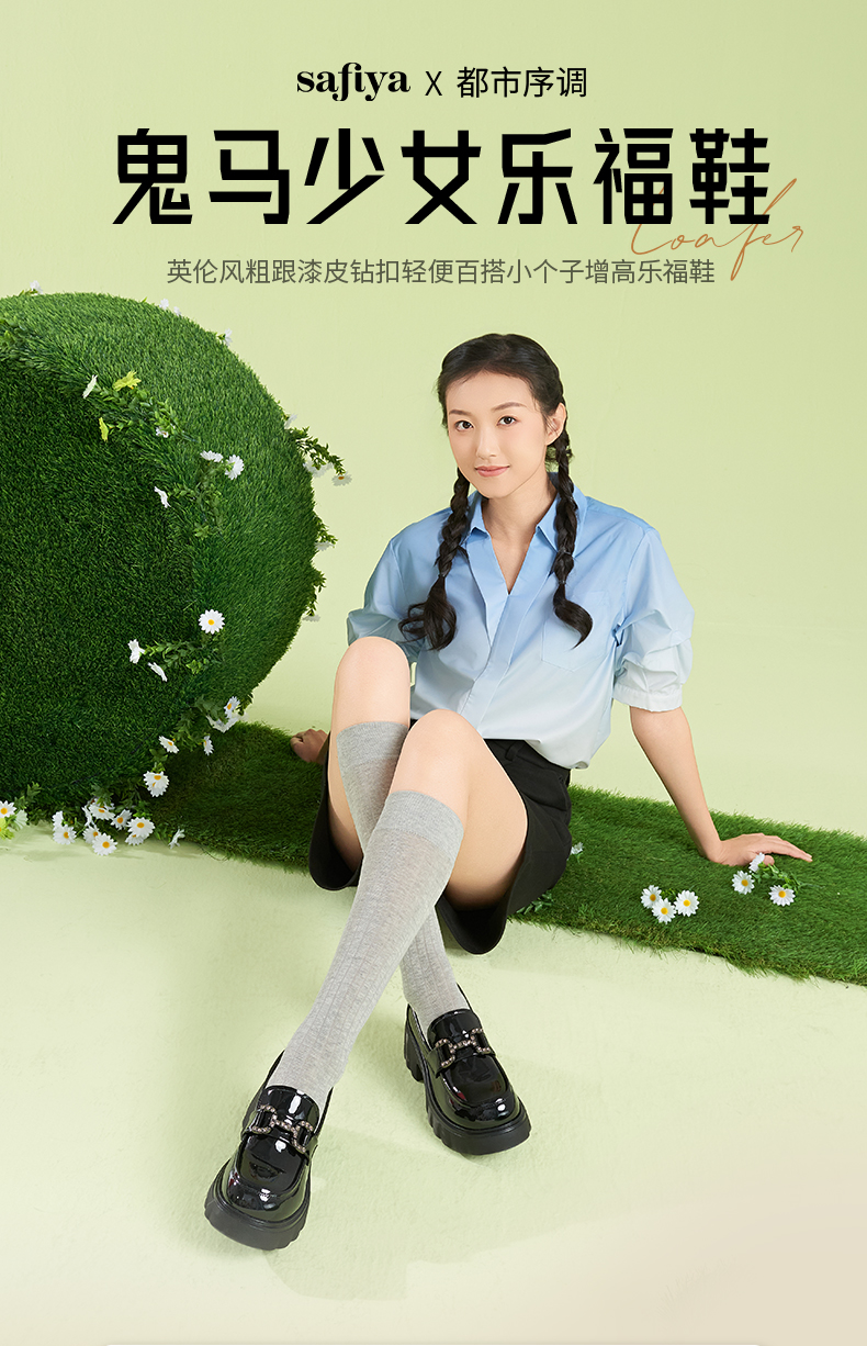 Safiya/索菲娅2025春英伦风粗跟漆皮钻扣轻便百搭小个子增高乐福鞋 SFD1112140