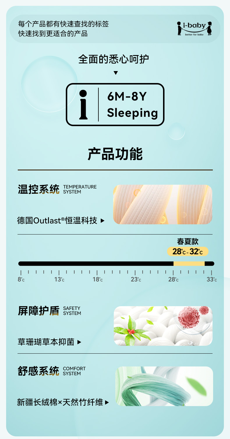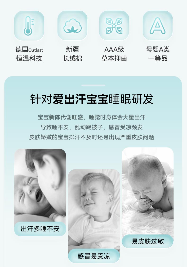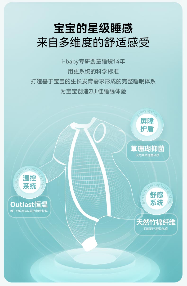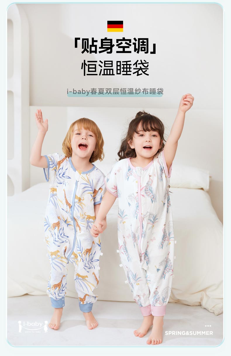 ibaby×outlast太空科技恒温德国outlast春夏双层纱布短袖分腿睡袋