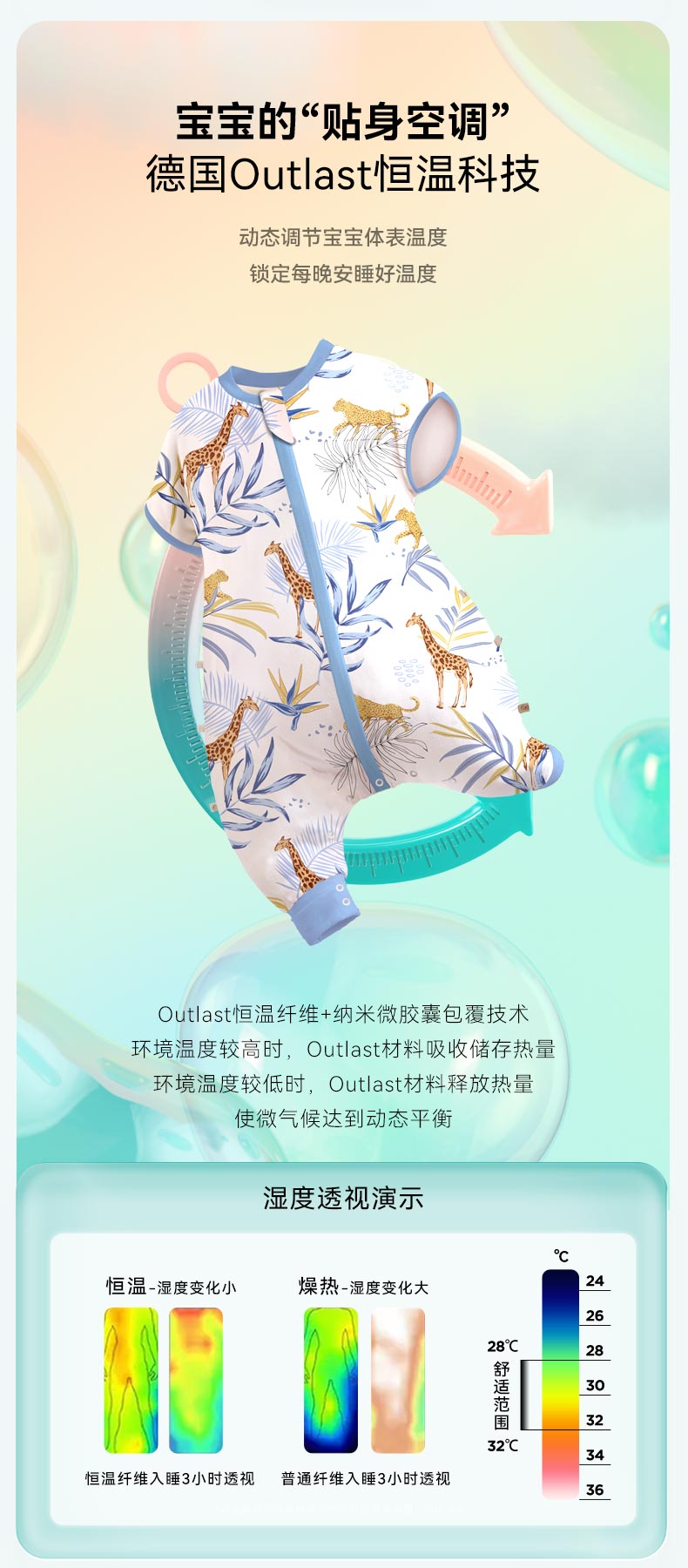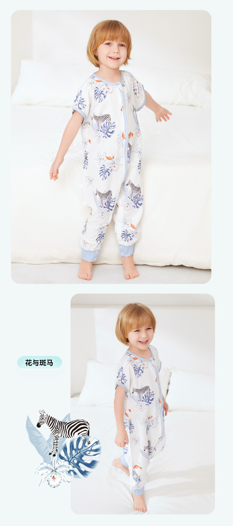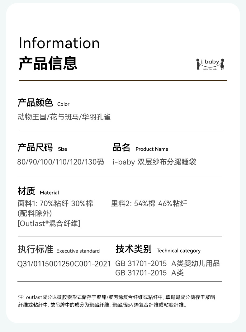 ibaby×outlast太空科技恒温德国outlast春夏双层纱布短袖分腿睡袋