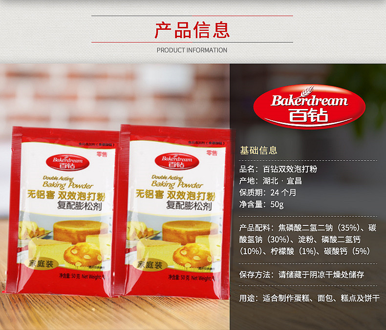 百钻无铝害双效泡打粉 50g 泡打粉蛋糕面包复配膨松剂烘焙用品