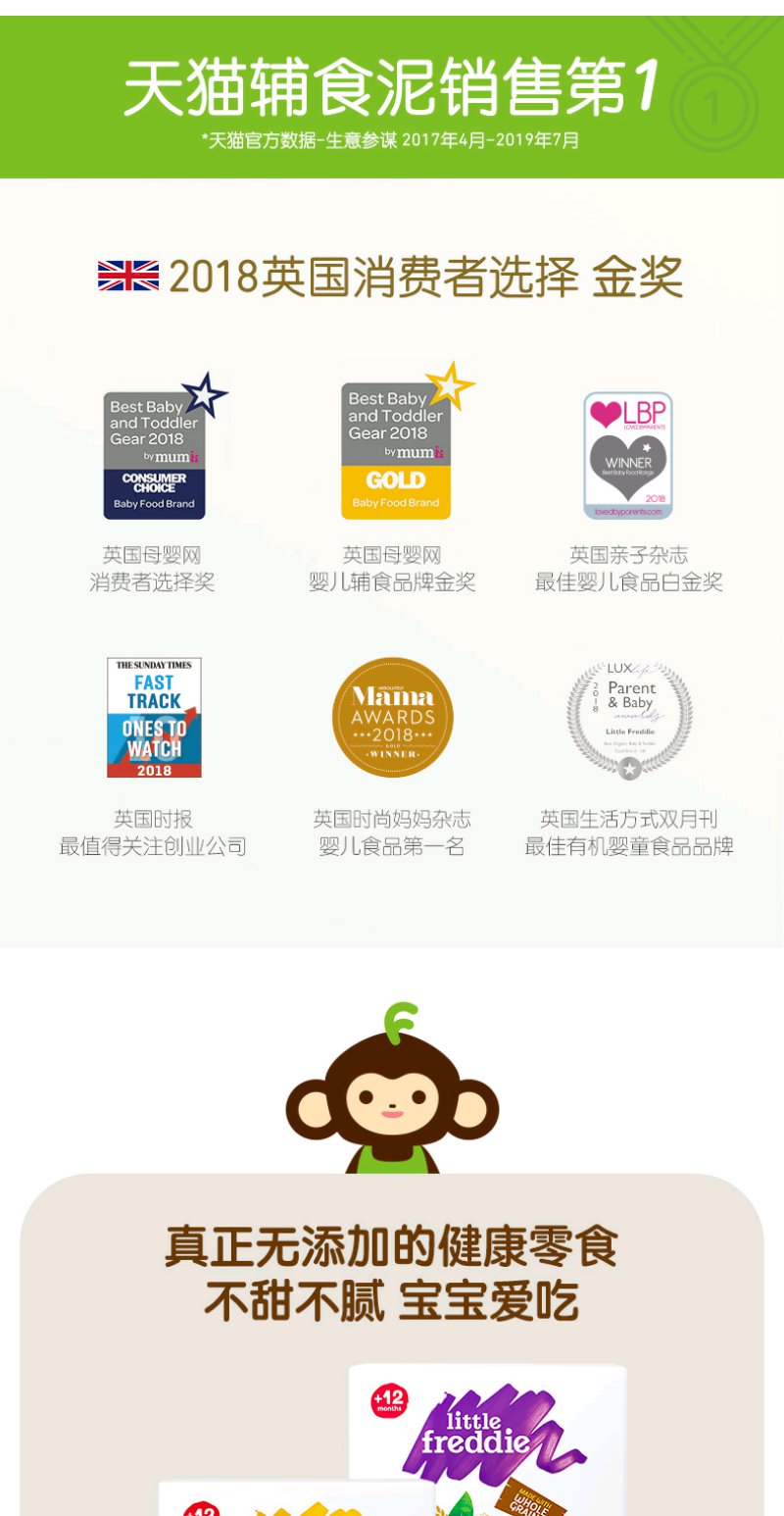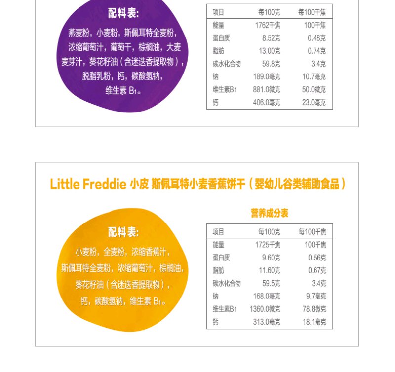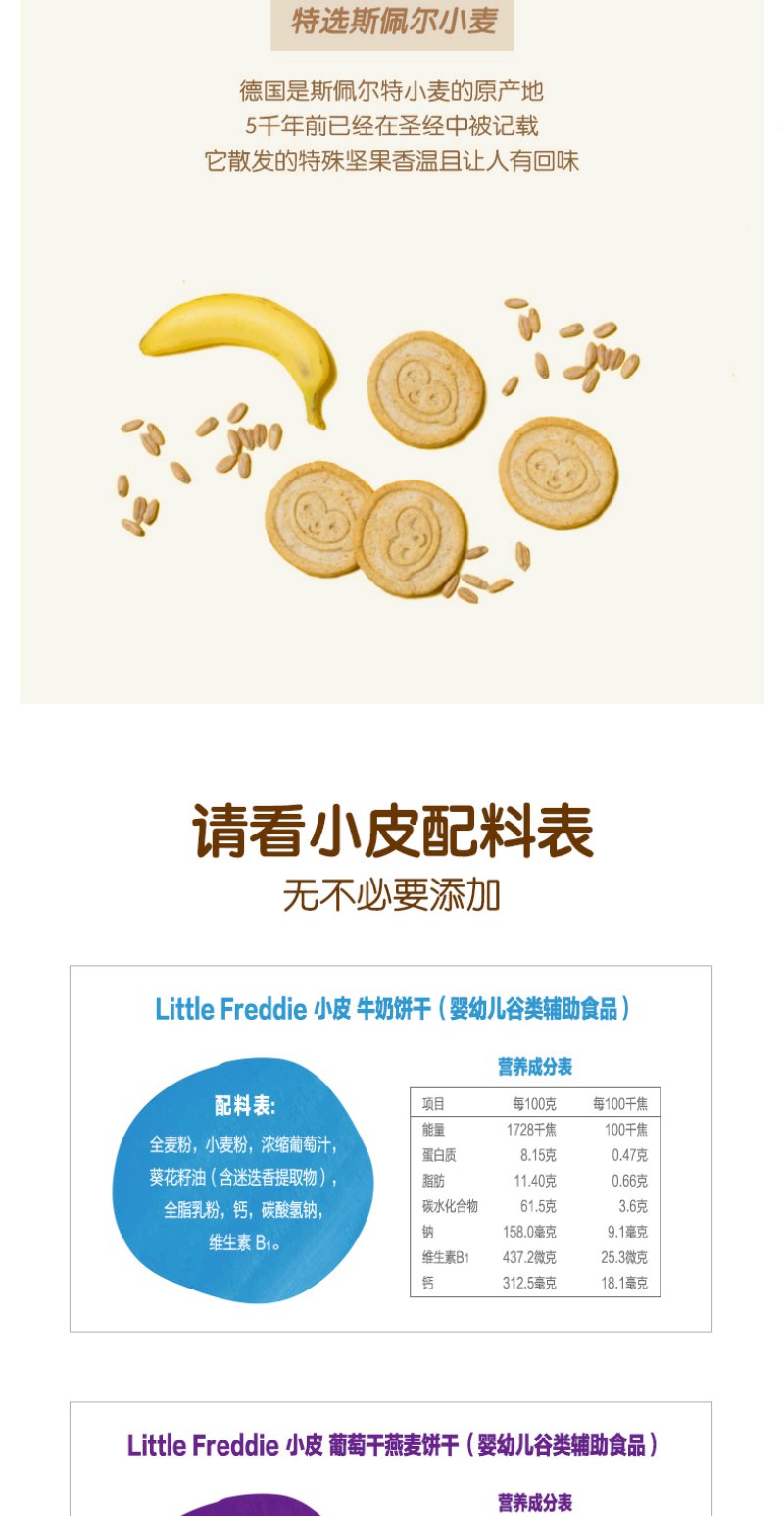 (超值)英国小皮little freddie 欧洲原装进口宝宝磨牙全谷物饼干 80g