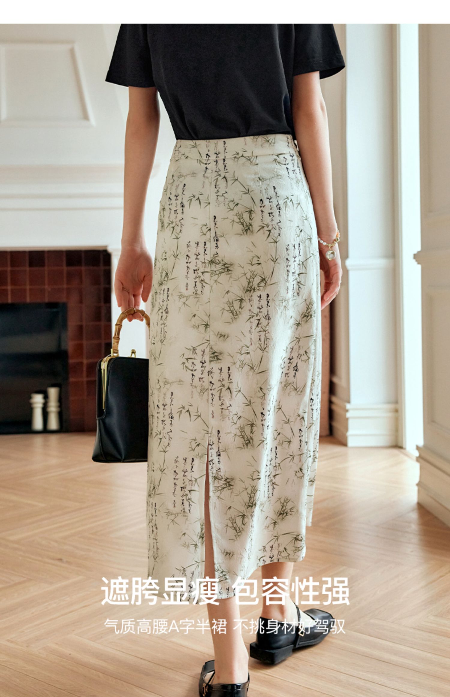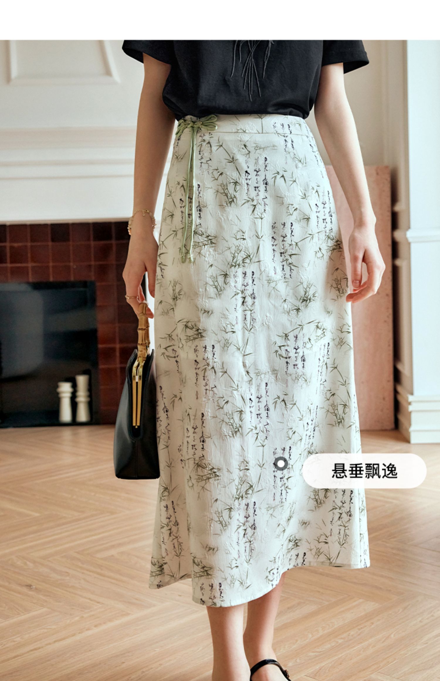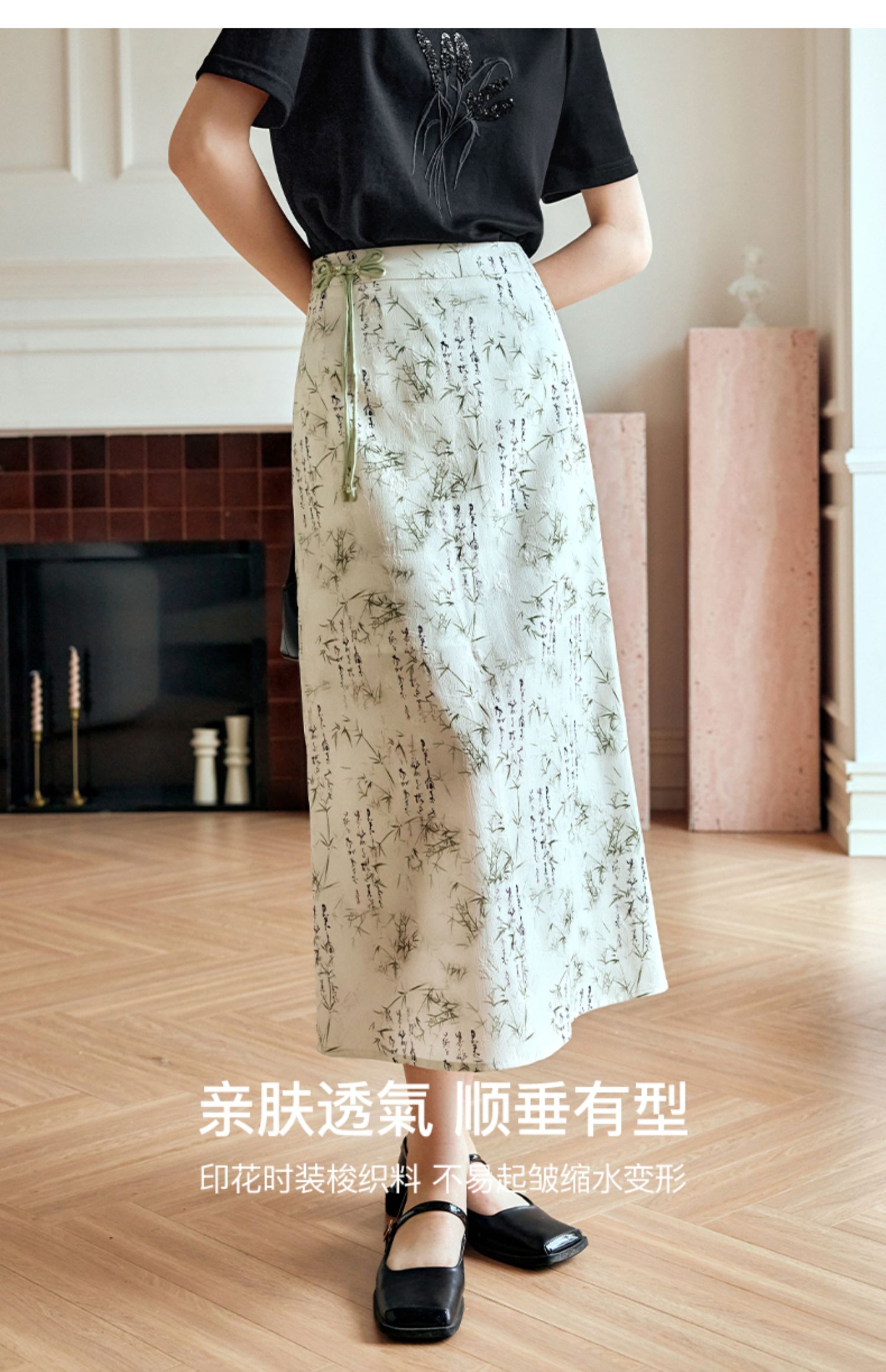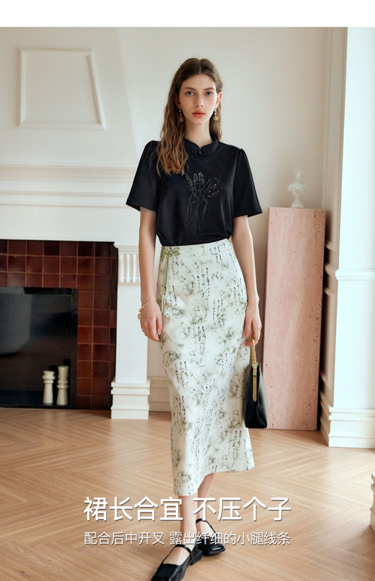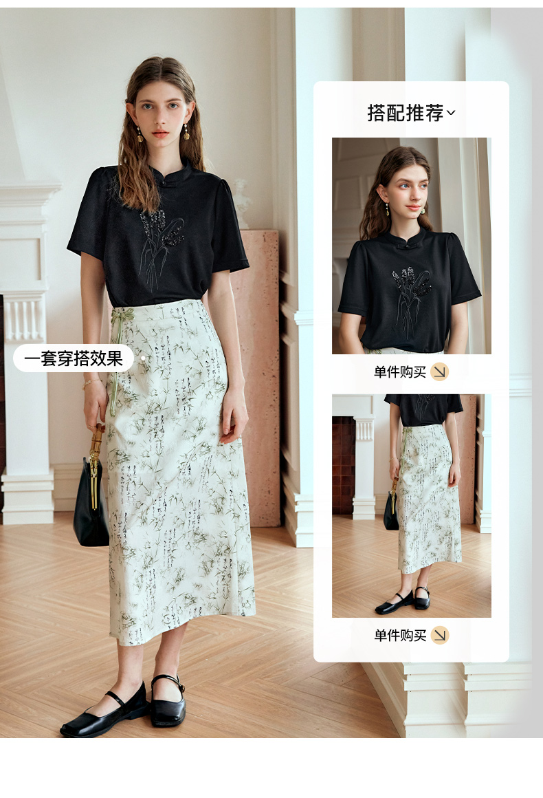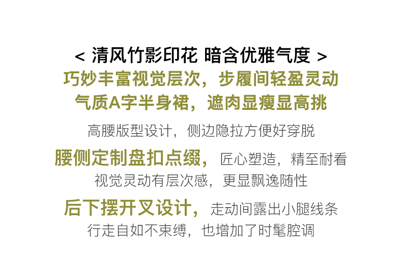 OLrain欧芮儿新中式印花半身裙女夏季2024年新款国风盘扣A字半裙