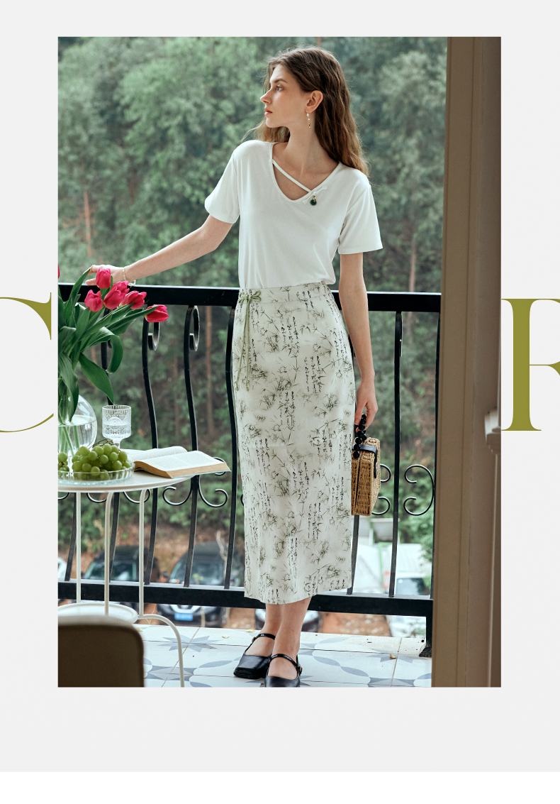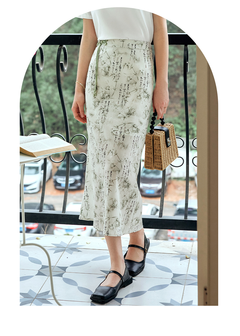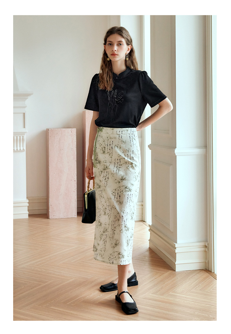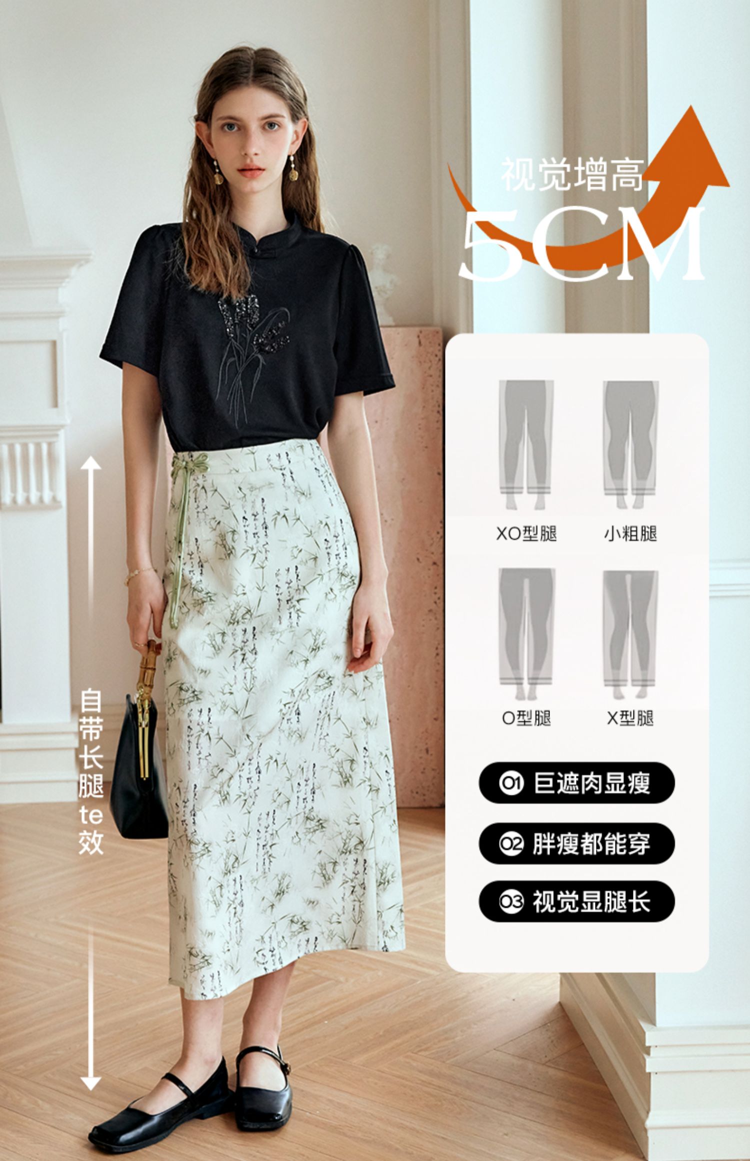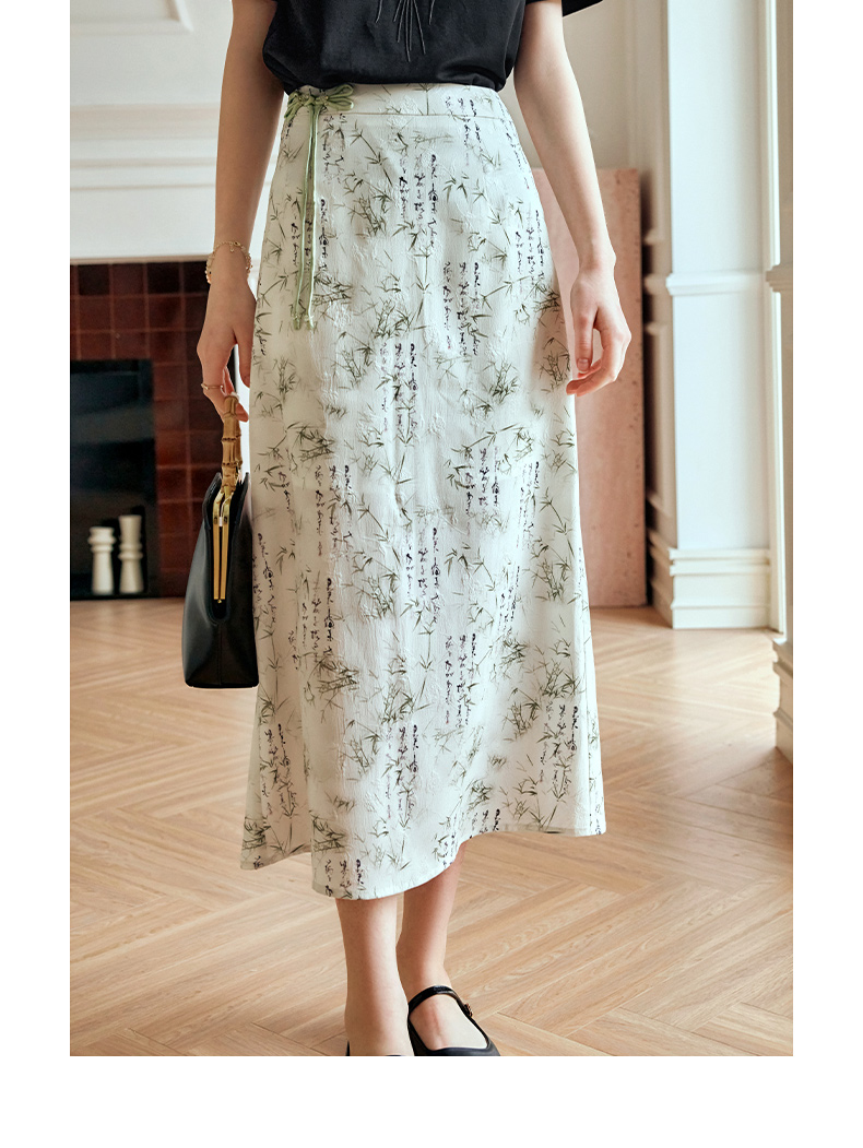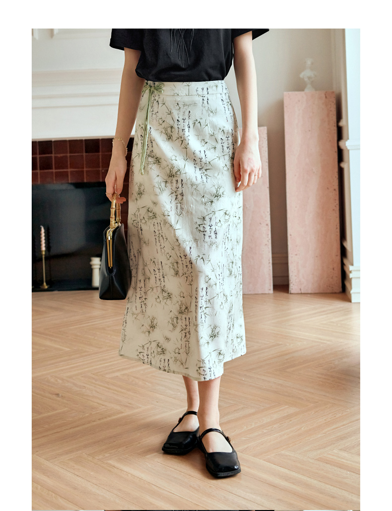 OLrain欧芮儿新中式印花半身裙女夏季2024年新款国风盘扣A字半裙