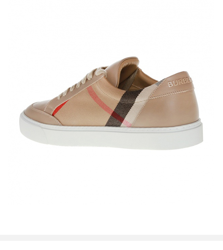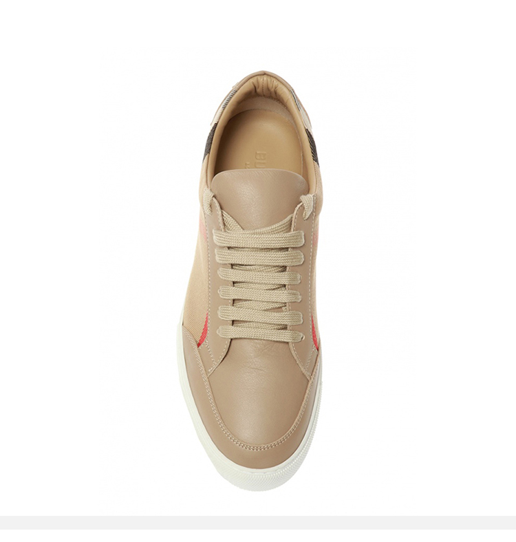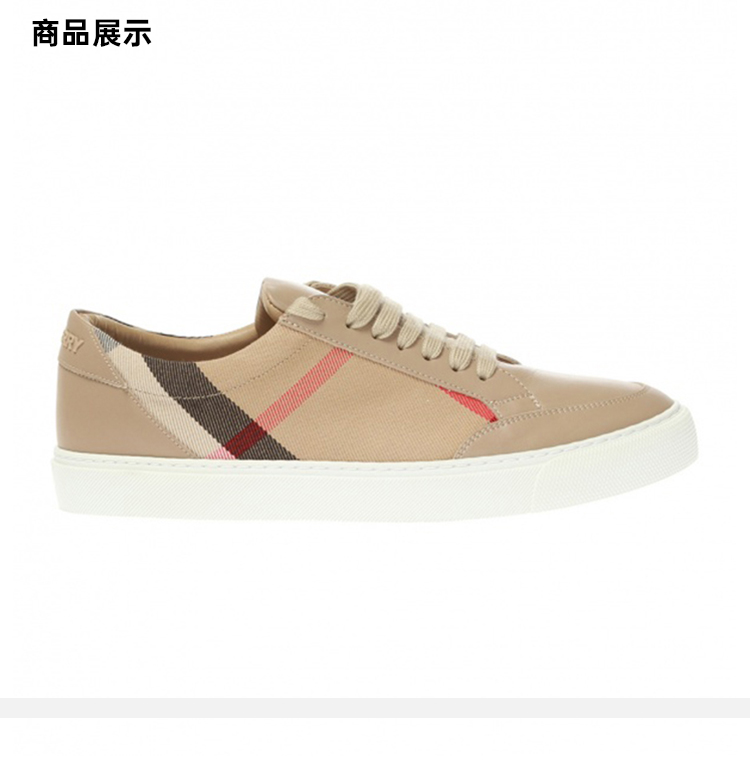 BURBERRY 巴宝莉 女士 House 格纹棉和皮革休闲运动鞋 棕褐色 8024330 A1363