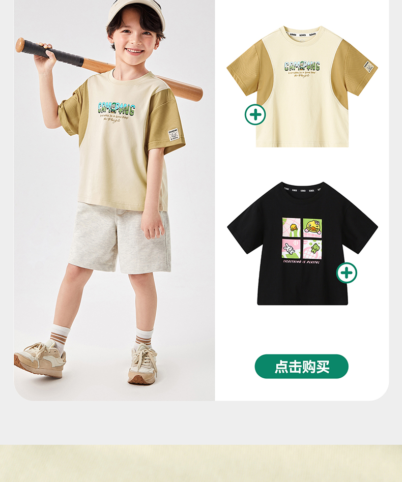 B.DUCK小黄鸭童装夏季男童短袖T恤105-150 BF2501910A