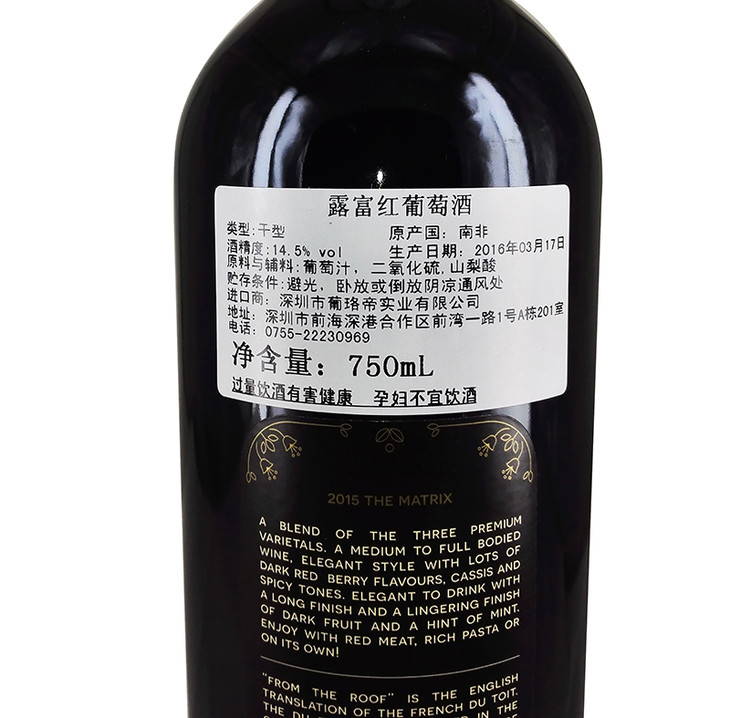 南非露富红葡萄酒750ml