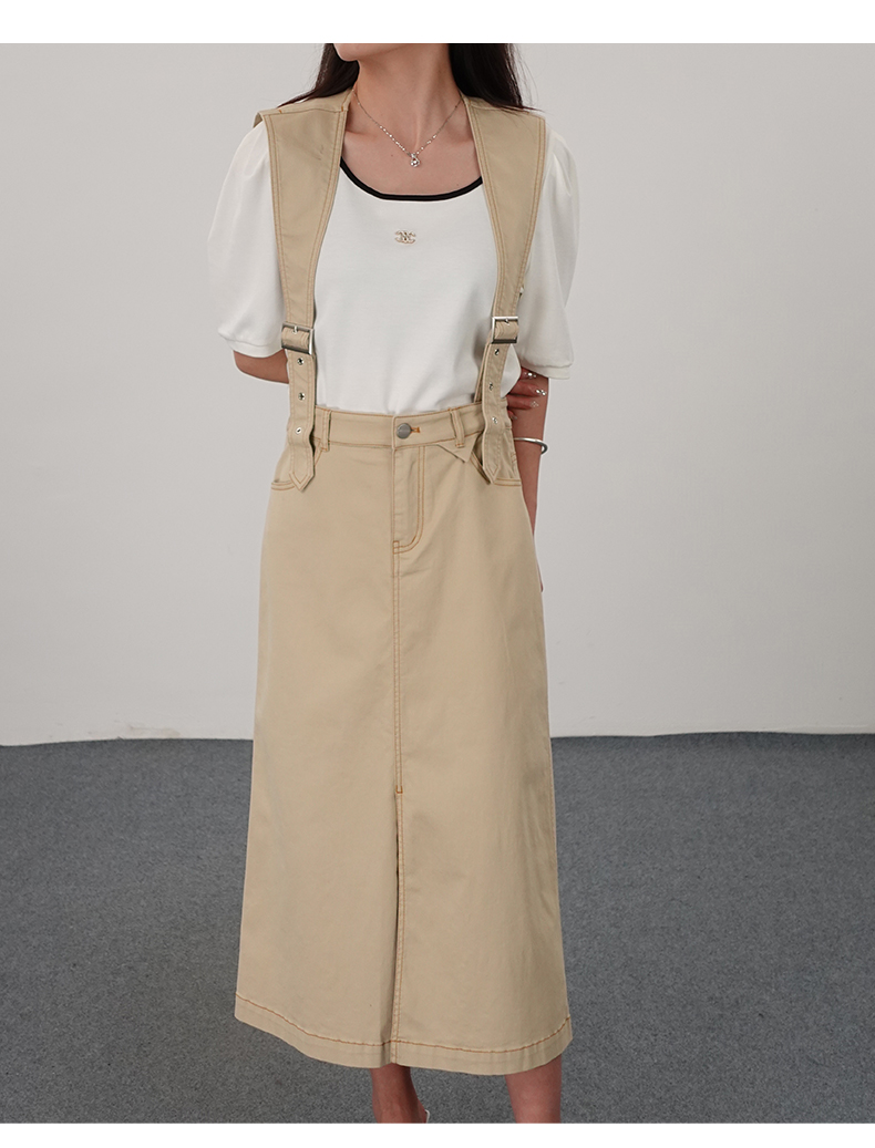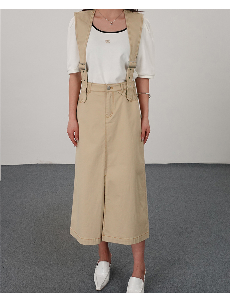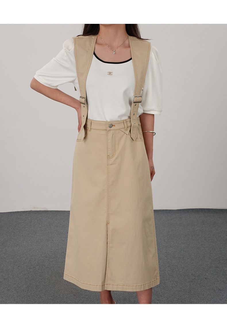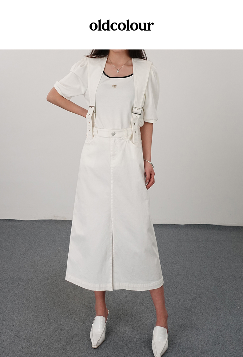 oldcolour21夏简约休闲设计感高腰背带裙N21065117