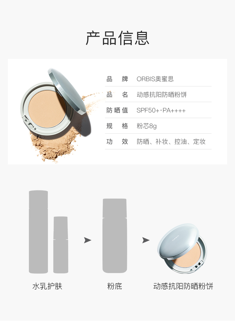 ORBIS奥蜜思动感抗阳防晒粉饼定妆 SPF50+ PA++++粉饼+盒(透明妆感)
