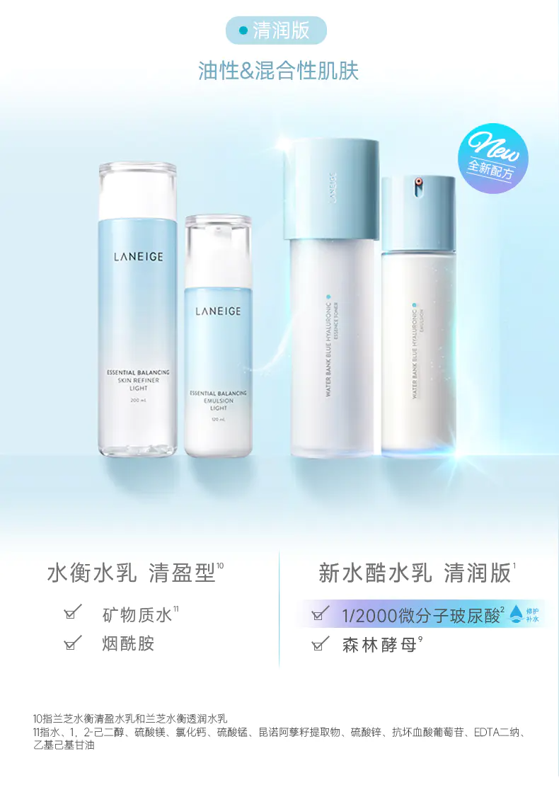 【香港直邮】兰芝水酷水乳水衡护肤套装小蓝盾补水保湿维稳修