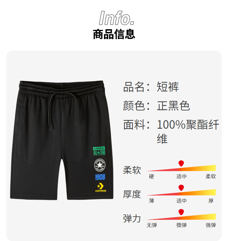 Converse匡威童衣儿童装夏季新款男女童短裤中大童运动休闲五分裤CV2222090