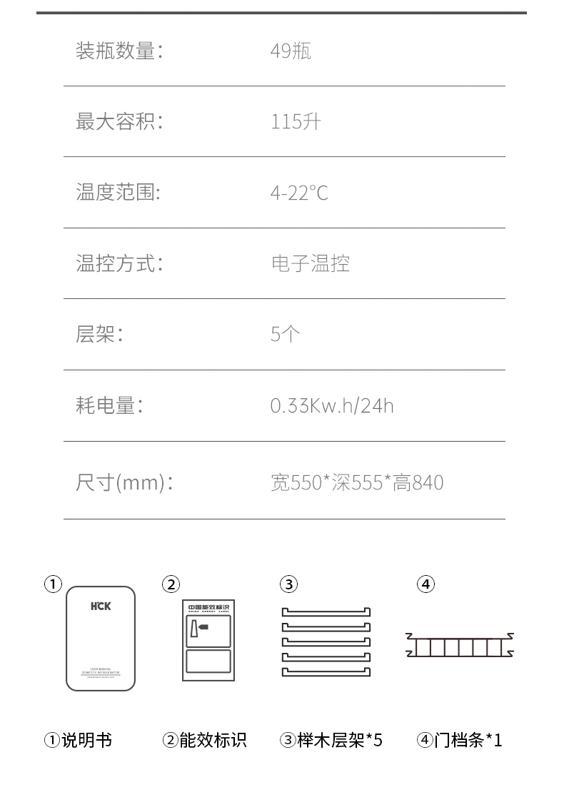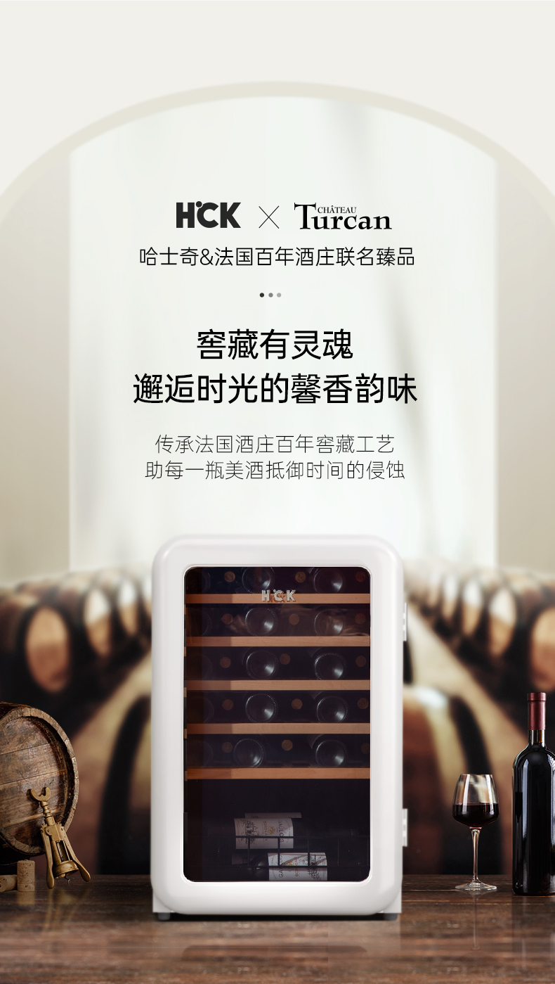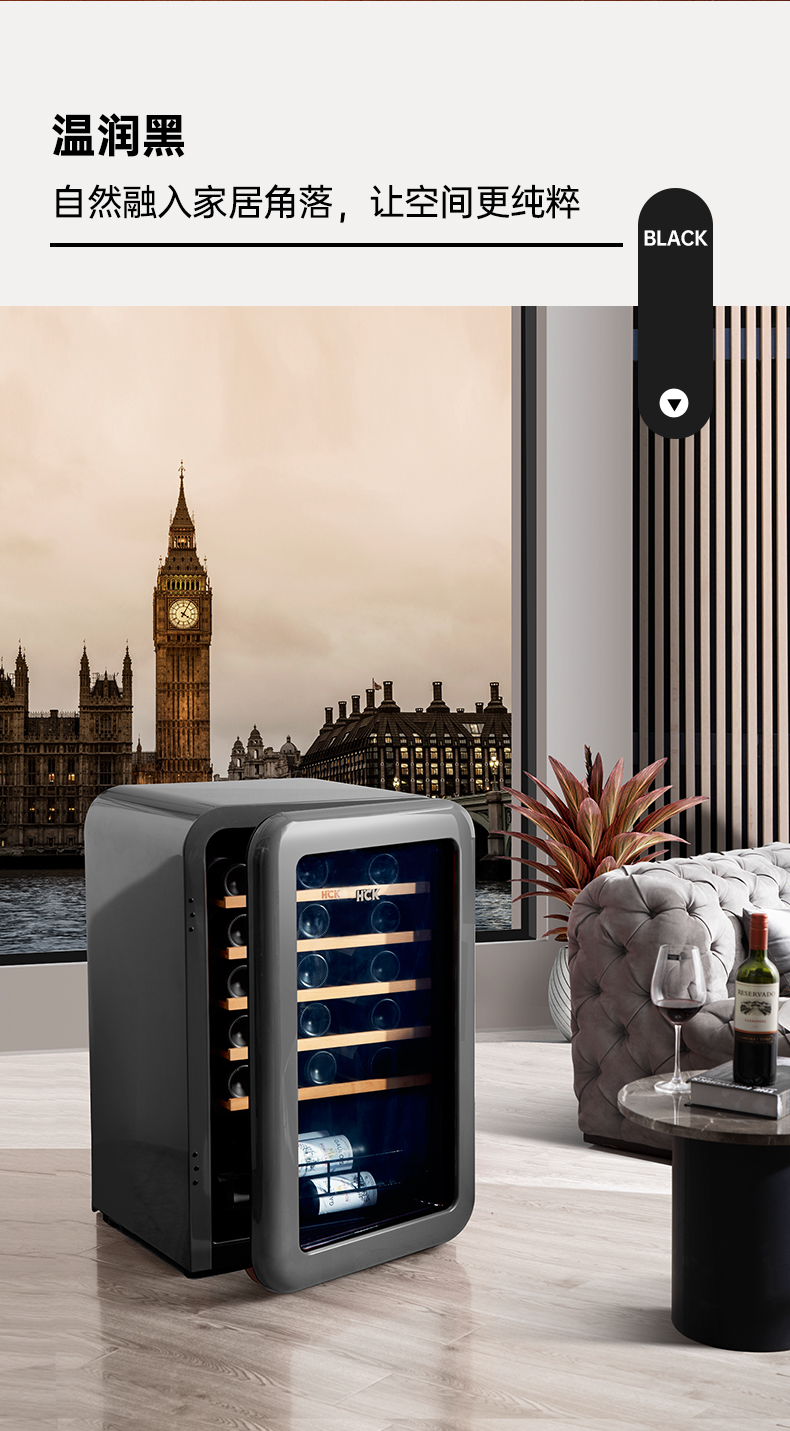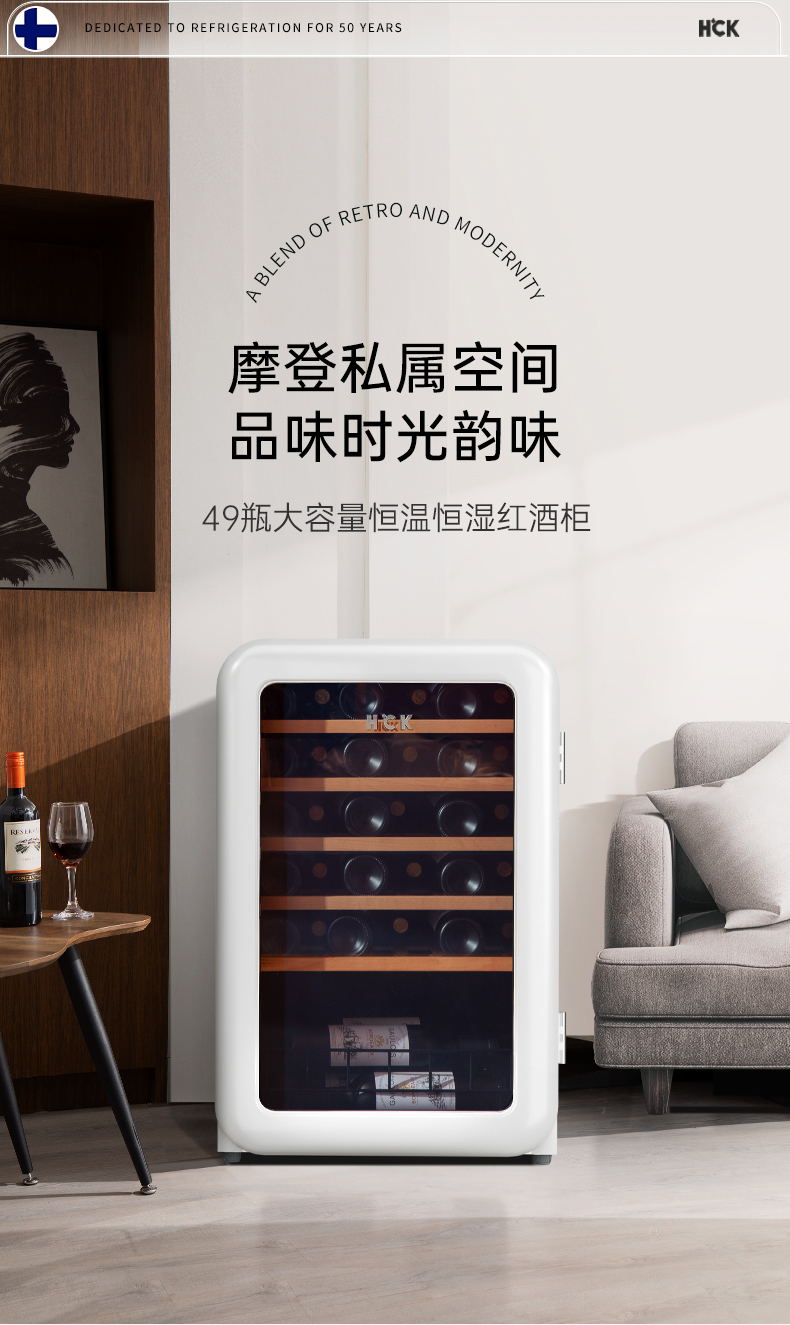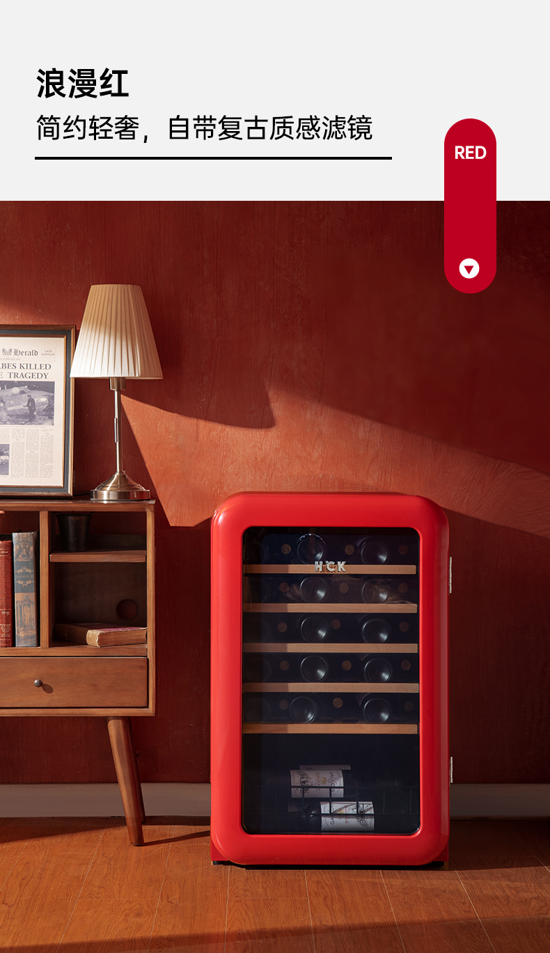 HCK哈士奇130RDA 复古酒柜49瓶恒温进口家用嵌入式小型冰吧冰箱