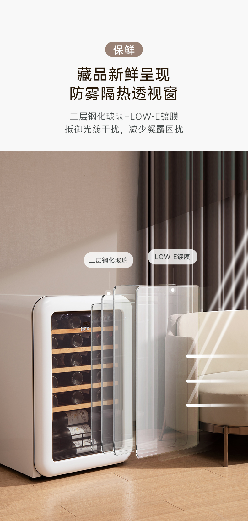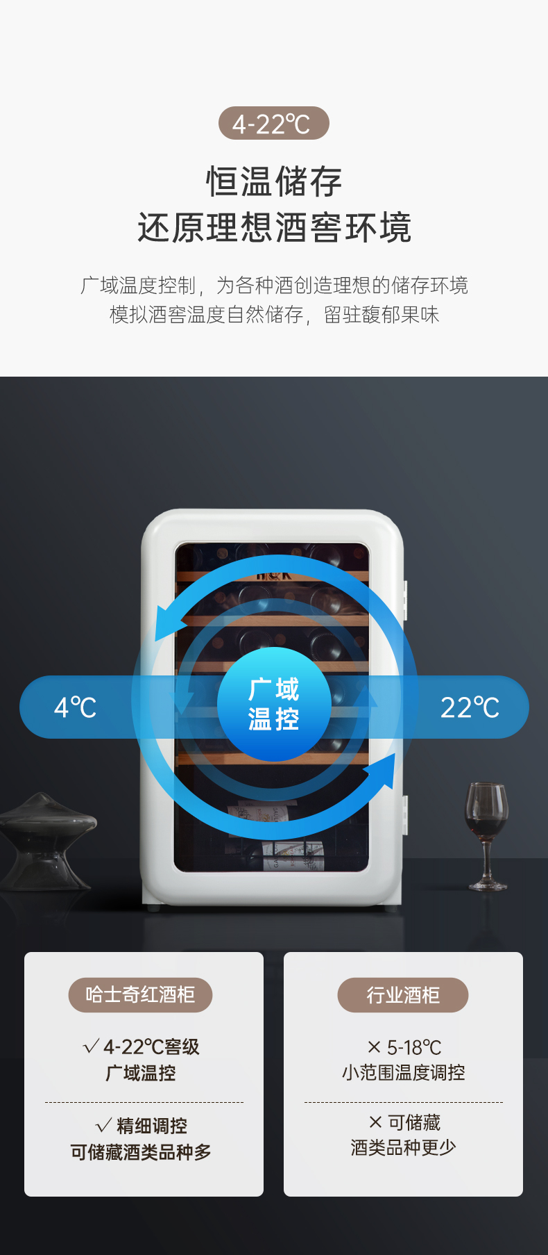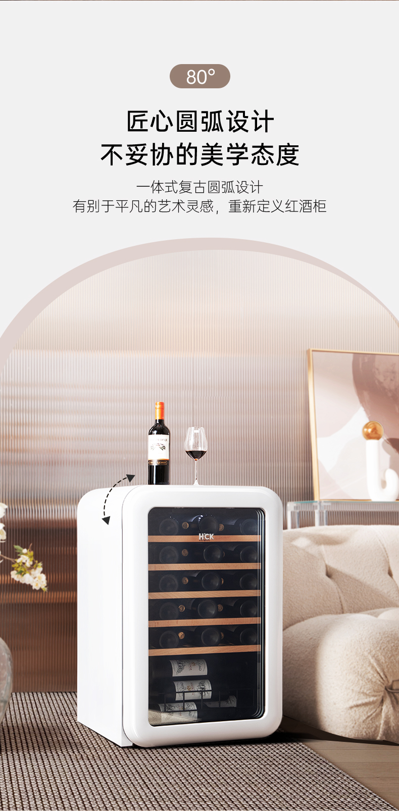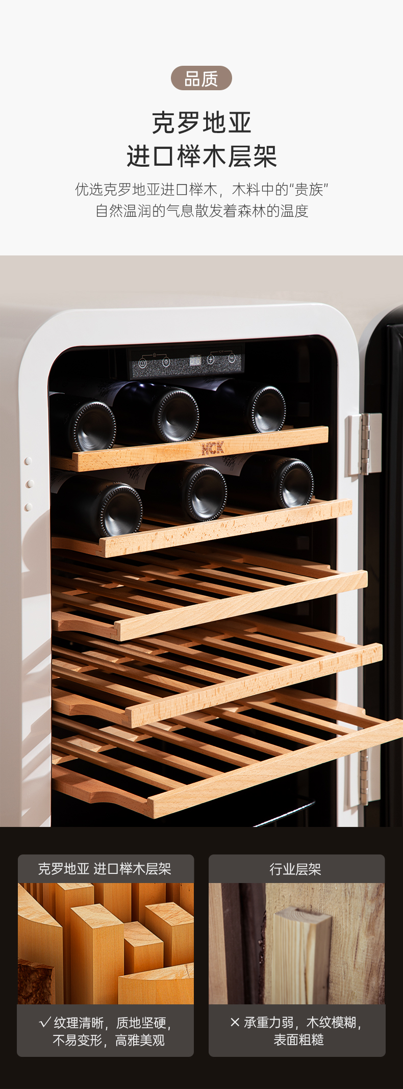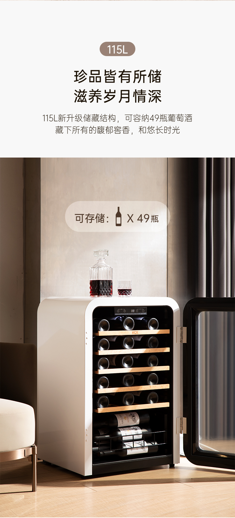 HCK哈士奇130RDA 复古酒柜49瓶恒温进口家用嵌入式小型冰吧冰箱