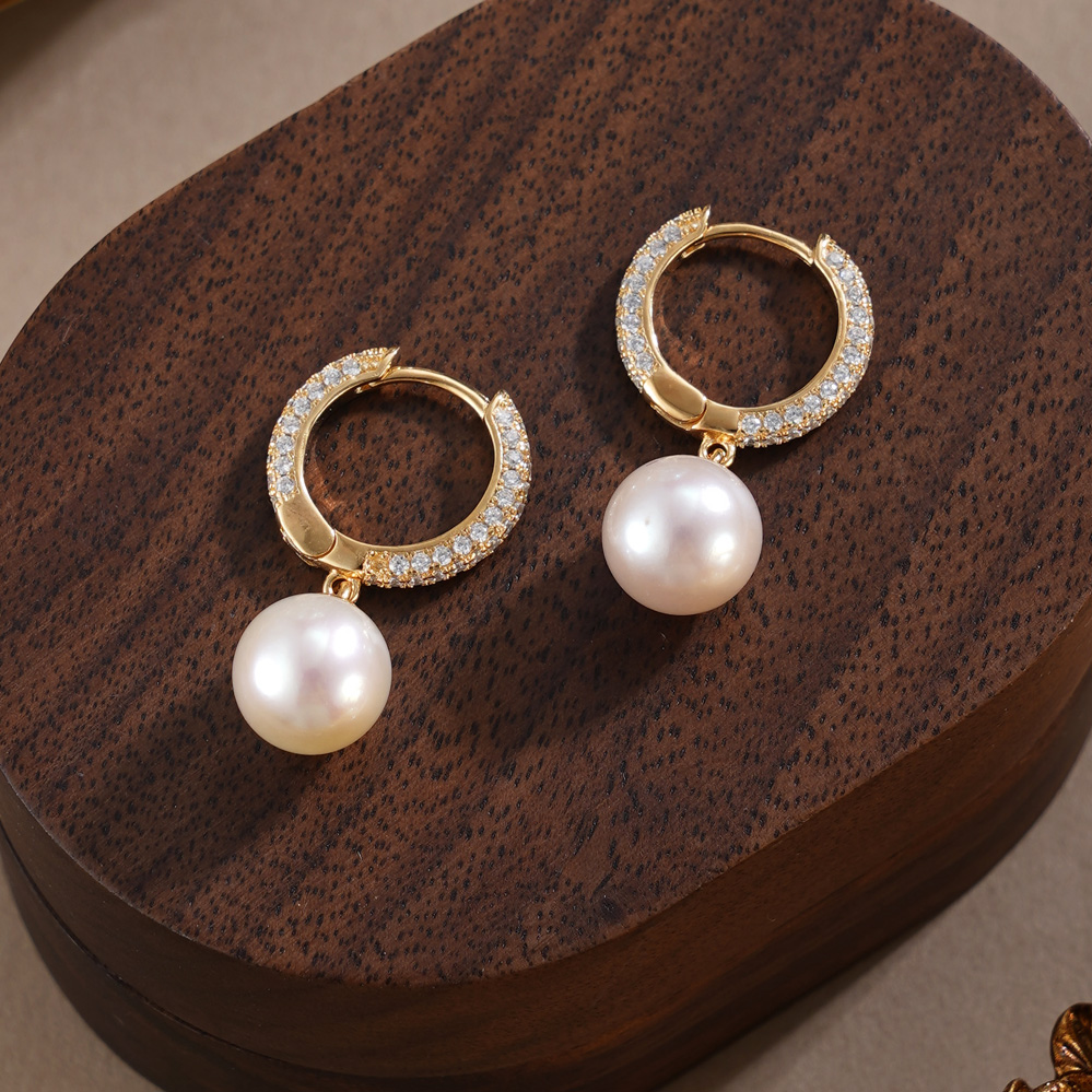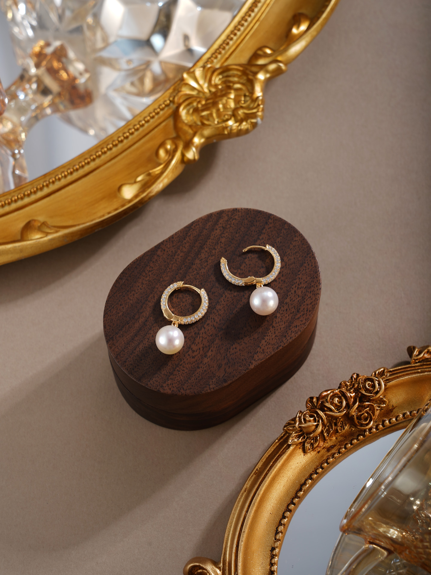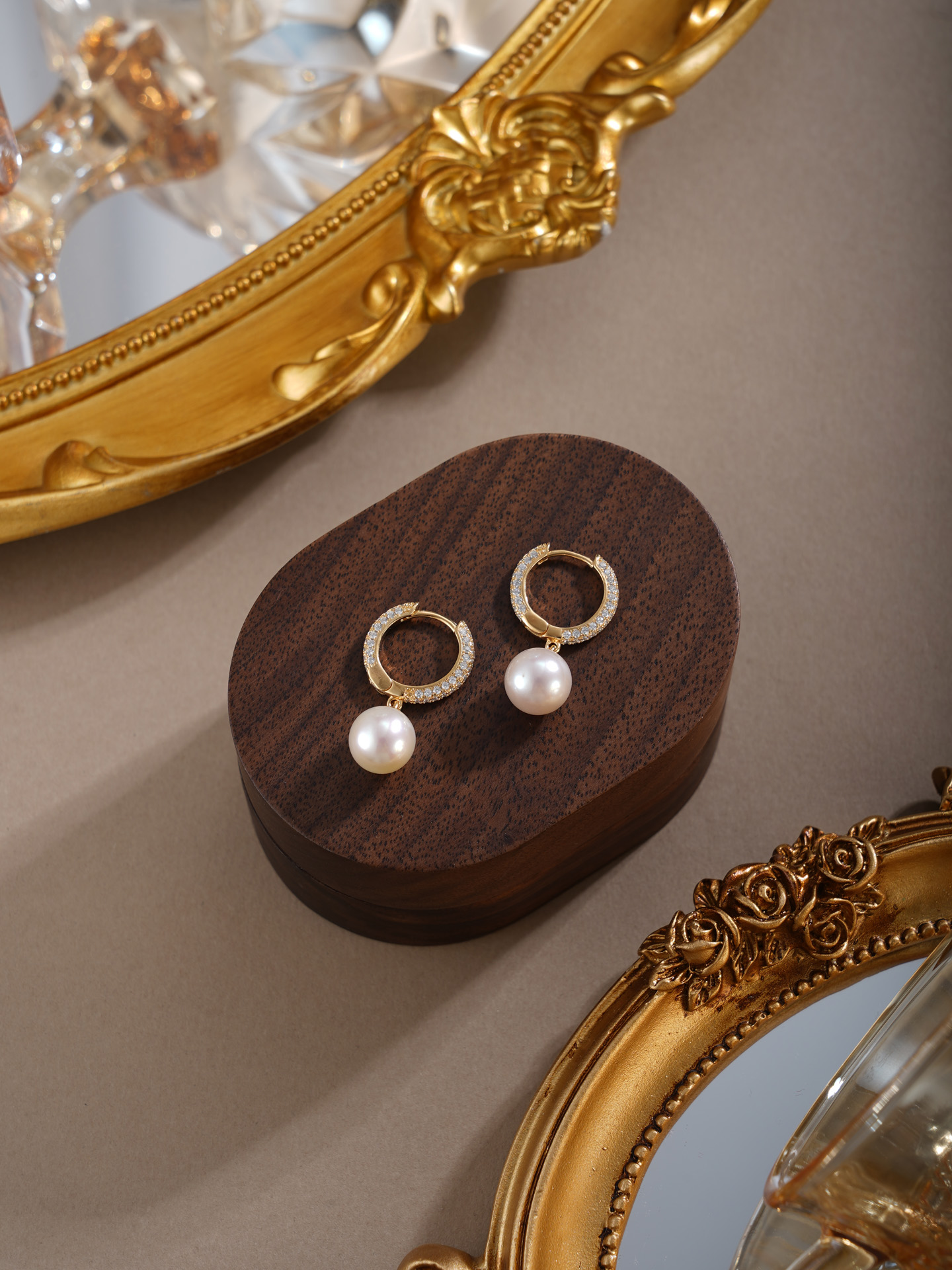 子佩集【晨露凝光】银S925珍珠惜王妃耳环【YE0624】镀金圆圈扣环2602