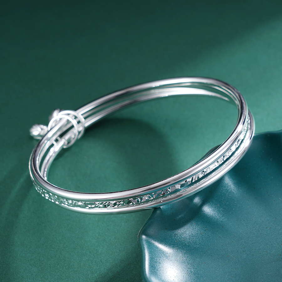 子佩集S999银【两世欢喜】手镯【SZ008937】纯银手镯碎冰冰莲蓬三个圈2503