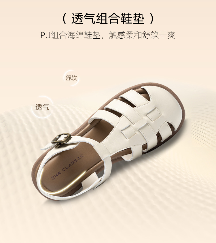 ZHR则则罗马凉鞋女款2024夏新款镂空软底猪笼鞋街头外穿沙滩女鞋