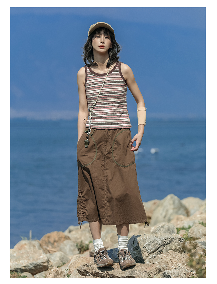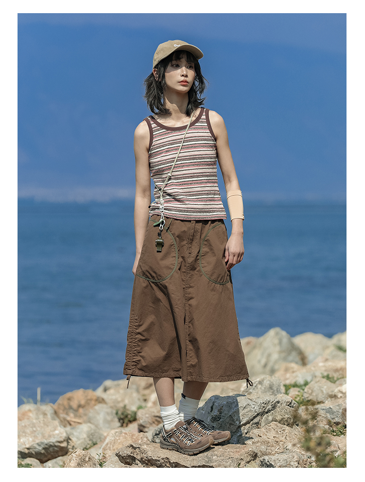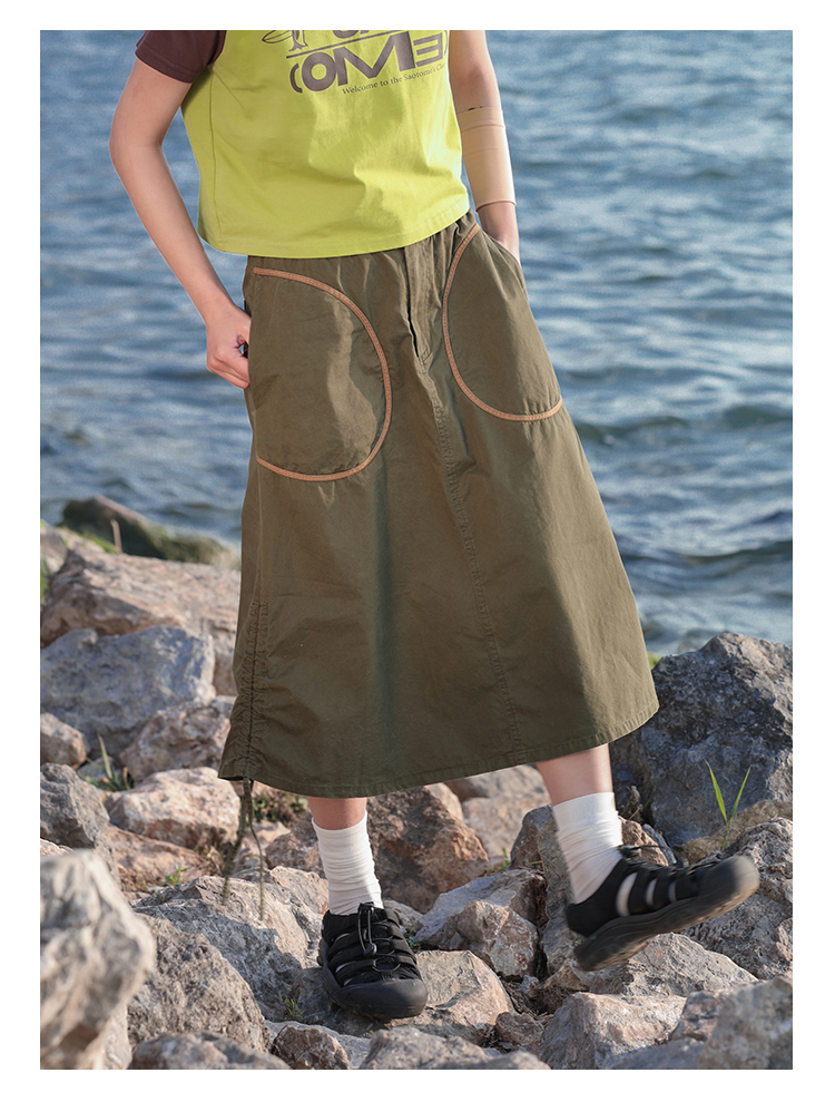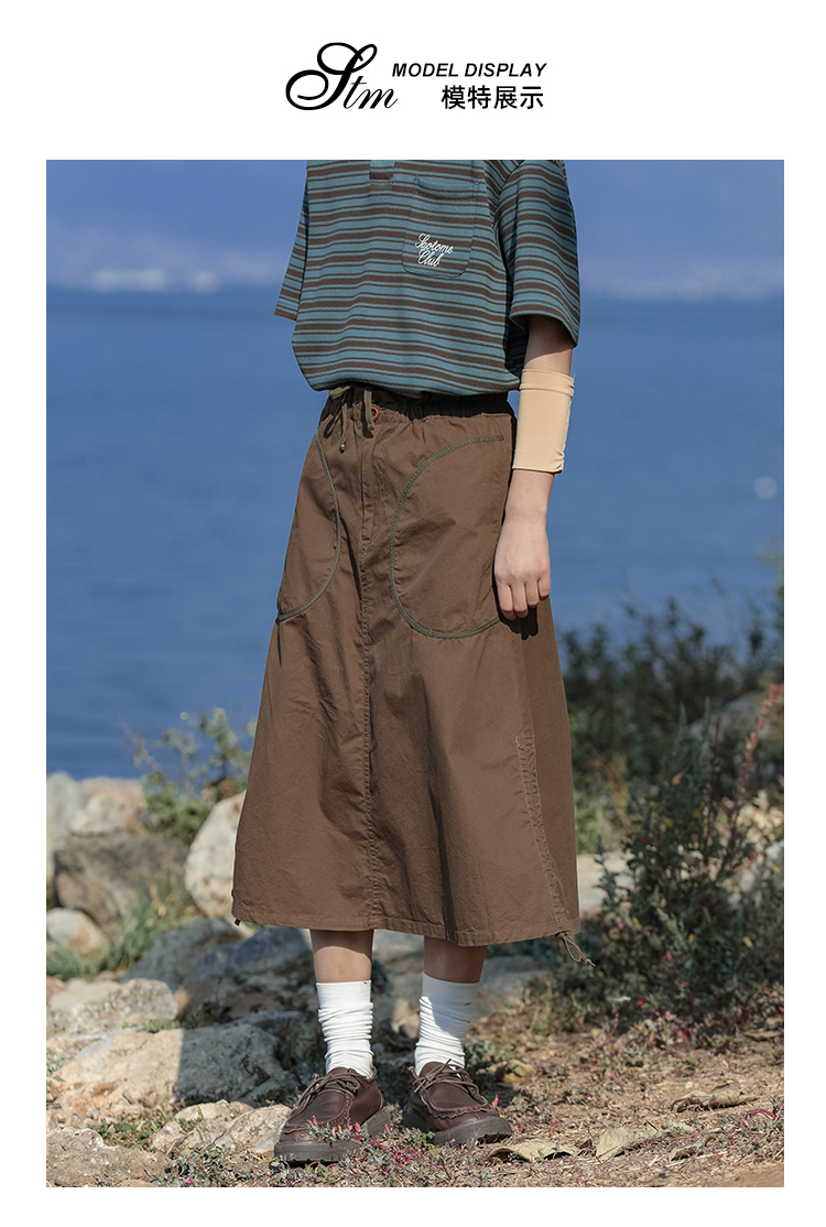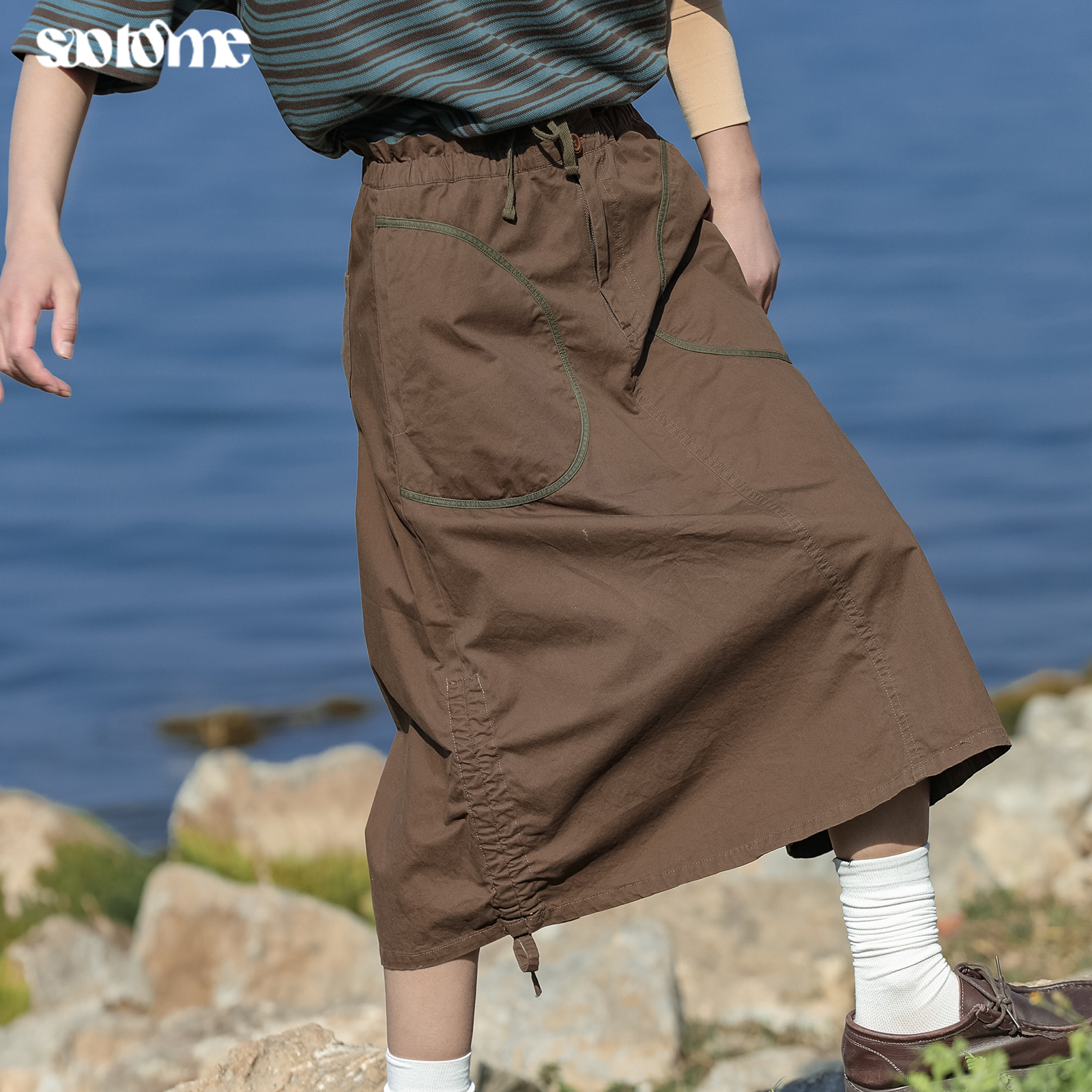 早乙女惠子saotome/STMQZ242016/户外水洗拼接后开叉工装裙