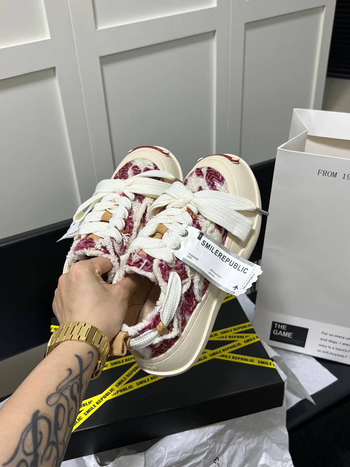 这种潮牌鞋,几十块做出来卖一百多的也有,卖三百多的也有,uu不敢说最便宜的。但是200出头的价位里,肯定不会拿差的坑你们