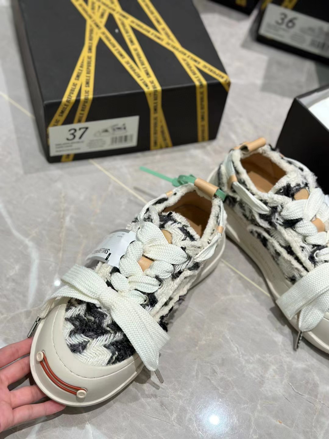 客人买了以后跟朋友撞鞋,朋友买的也是a,比我们还贵,鞋头没我们好看~